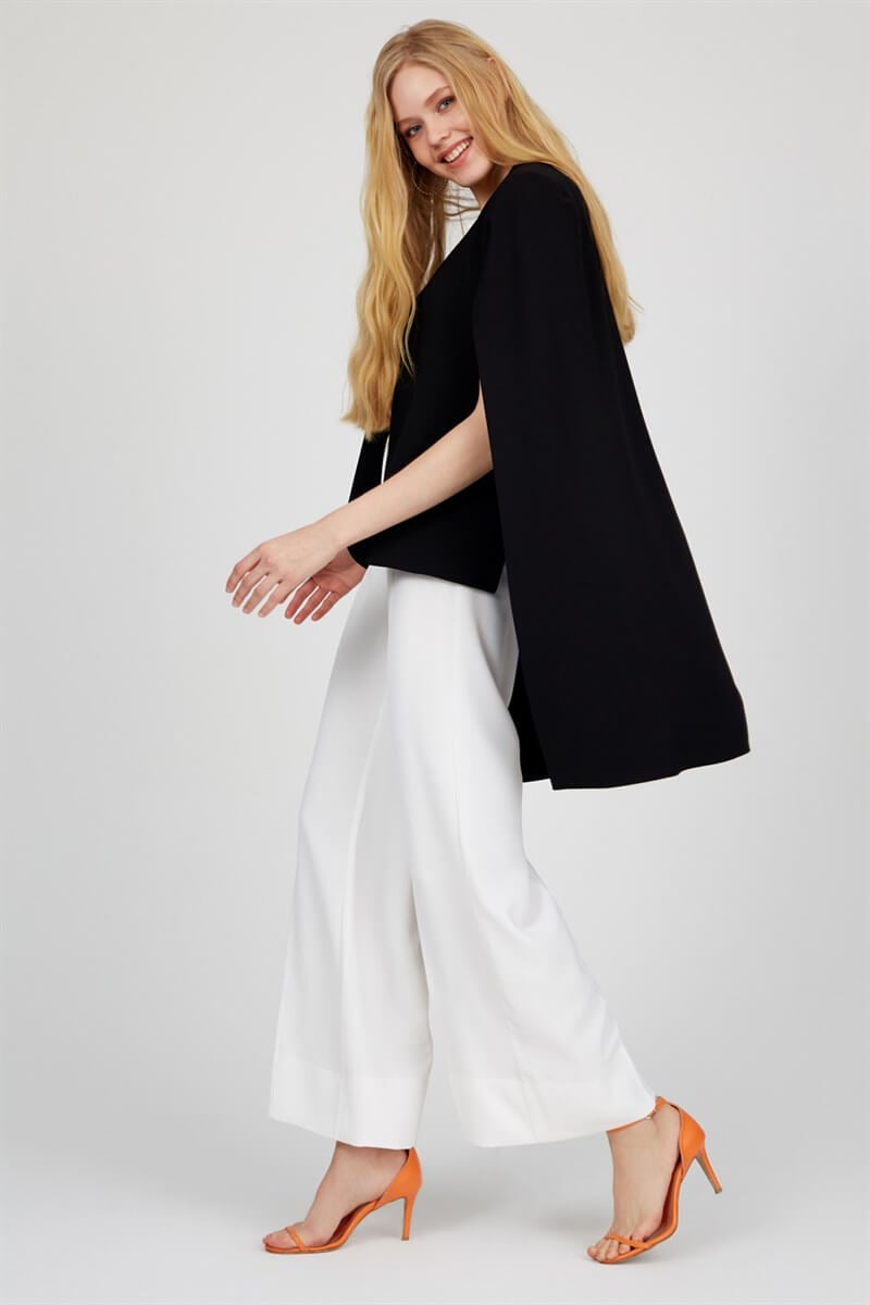 Ofis şıklığının vazgeçilmezi ceketlerde yeni bir çağ yaratan pelerin kesim, bu ceketi giyenleri yarı yolda bırakmayıp şıklığın zirvesine taşıyacak.