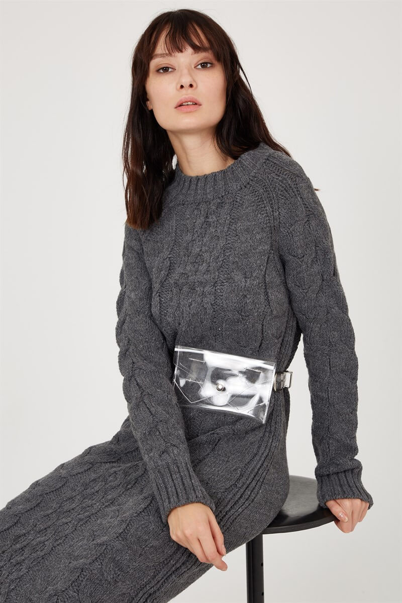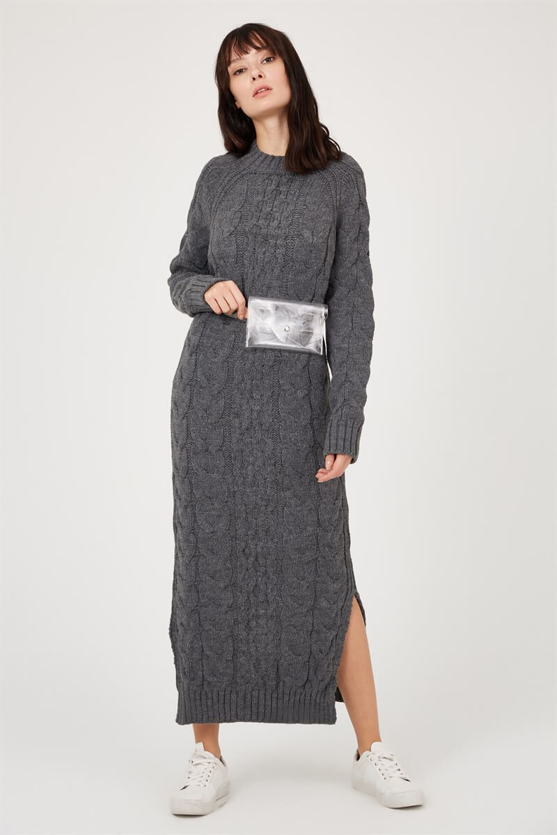 Gri 19WR073 TRİKO ELBİSE (ST040W940454)