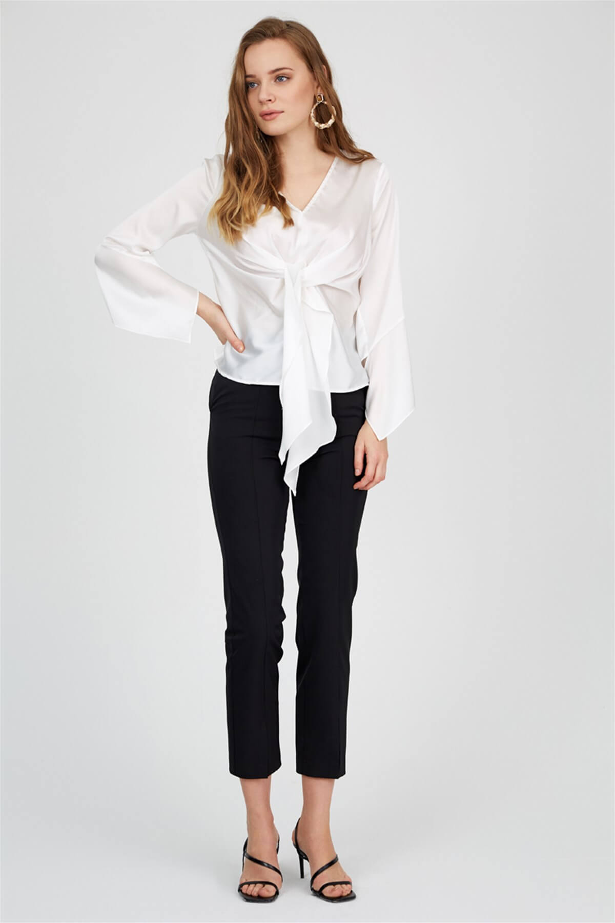Sakin ama iddialı askılı bluz modeliyle farkını hissettirenlerden. Tek başlarına ne kadar kendi halinde gözükselerde renkli şortlarla kombinlenince stilinize farklılık katıyor.