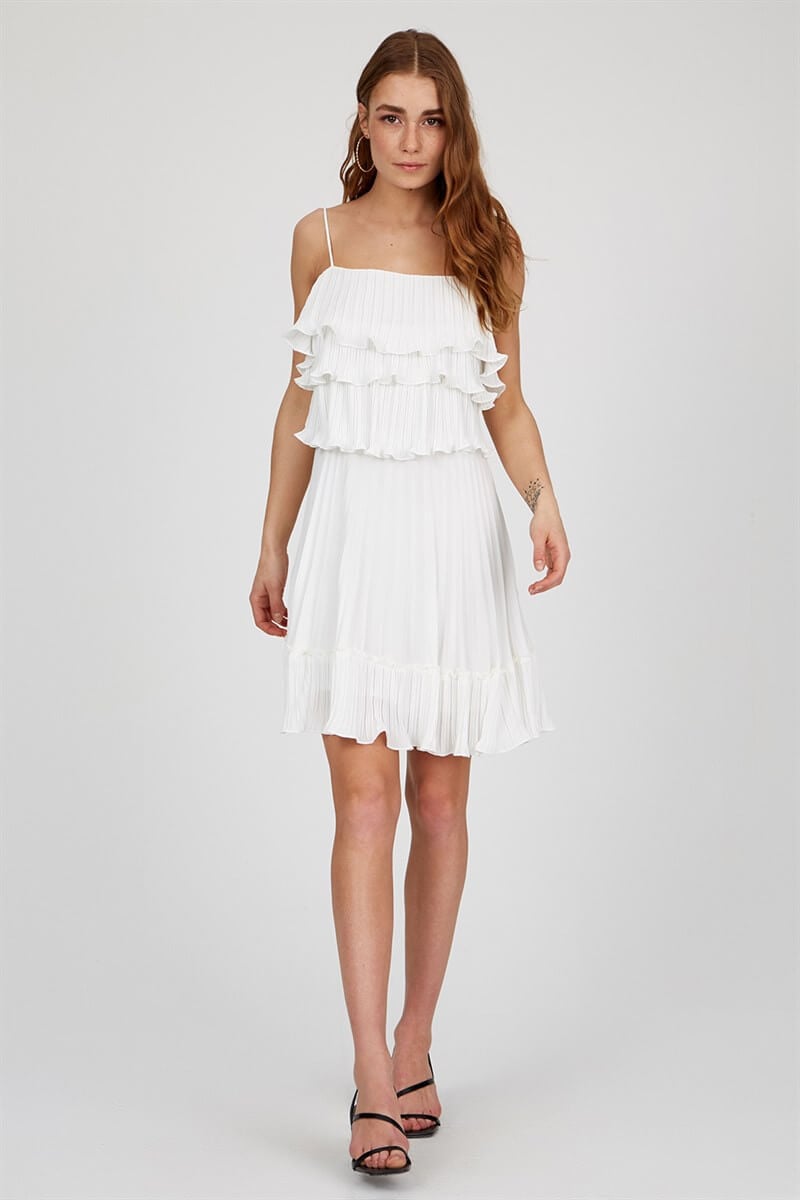 Şıklığını piselerinden alan bu elbiseyle sürekli dans etmek istersiniz. Gecenin en çok eğlenen kişisi olmaya hazır olun.
