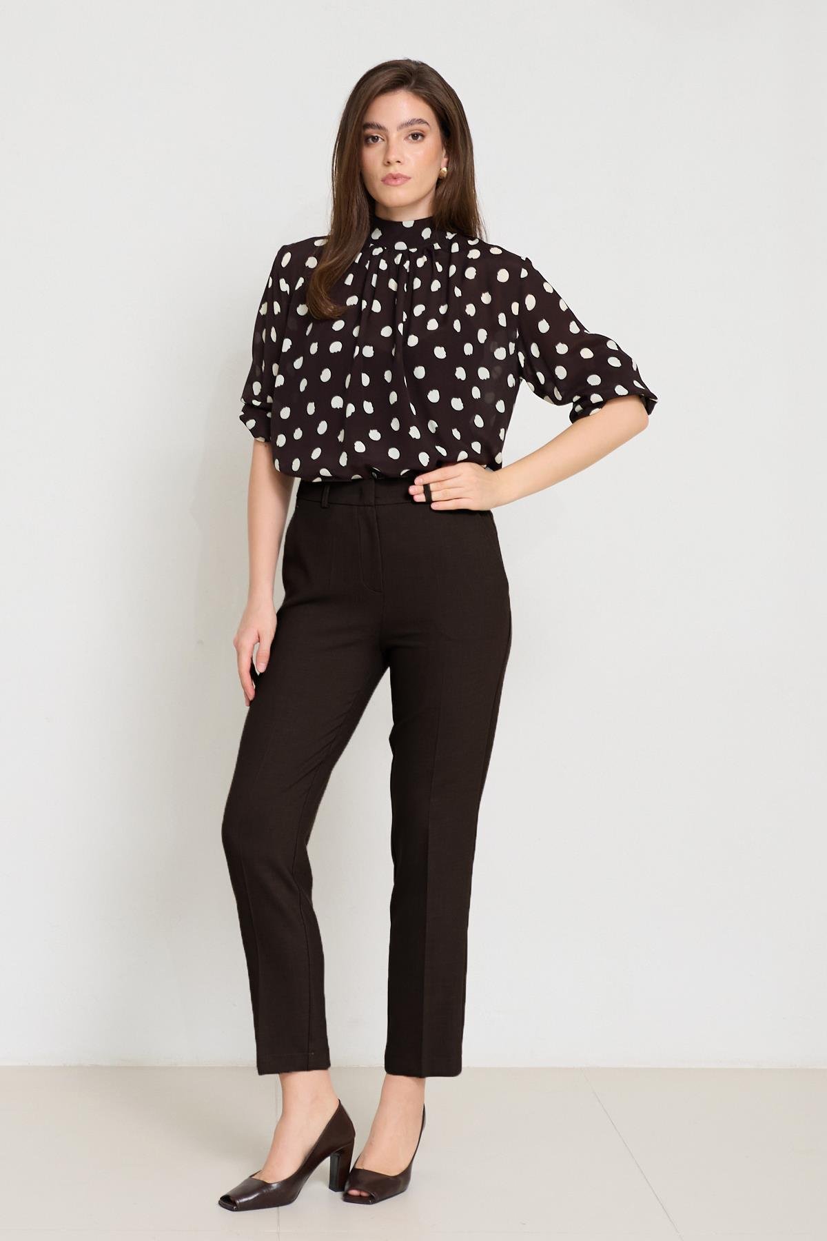 Cep ve bel detaylı tam kalıp pantolon, zarif duruşu ve kusursuz kalıbıyla günlük ve profesyonel şıklığı bir arada sunar. Bel kısmındaki detaylar, vücut formunu dengeli bir şekilde vurgularken, cepler tasarıma hem işlevsellik hem de modern bir görünüm kazandırır. Tam kalıp yapısı sayesinde rahat bir kullanım sunan bu pantolon, gömleklerle ofis tarzında, basic üstlerle ise casual kombinlerde mükemmel bir denge yaratır. Her mevsim gardırobunuzun en çok tercih edilen parçalarından biri olacak. PREMIUM KUMAŞ RAYON: Rayon, selülozdan üretilen, yumuşak, hafif ve parlak görünümlü bir kumaştır.