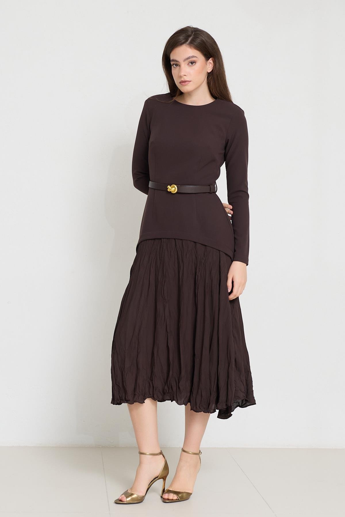 Acı-Kahve Kemer Detaylı Uzun Kollu Midi Elbise (ST20250S40312003)