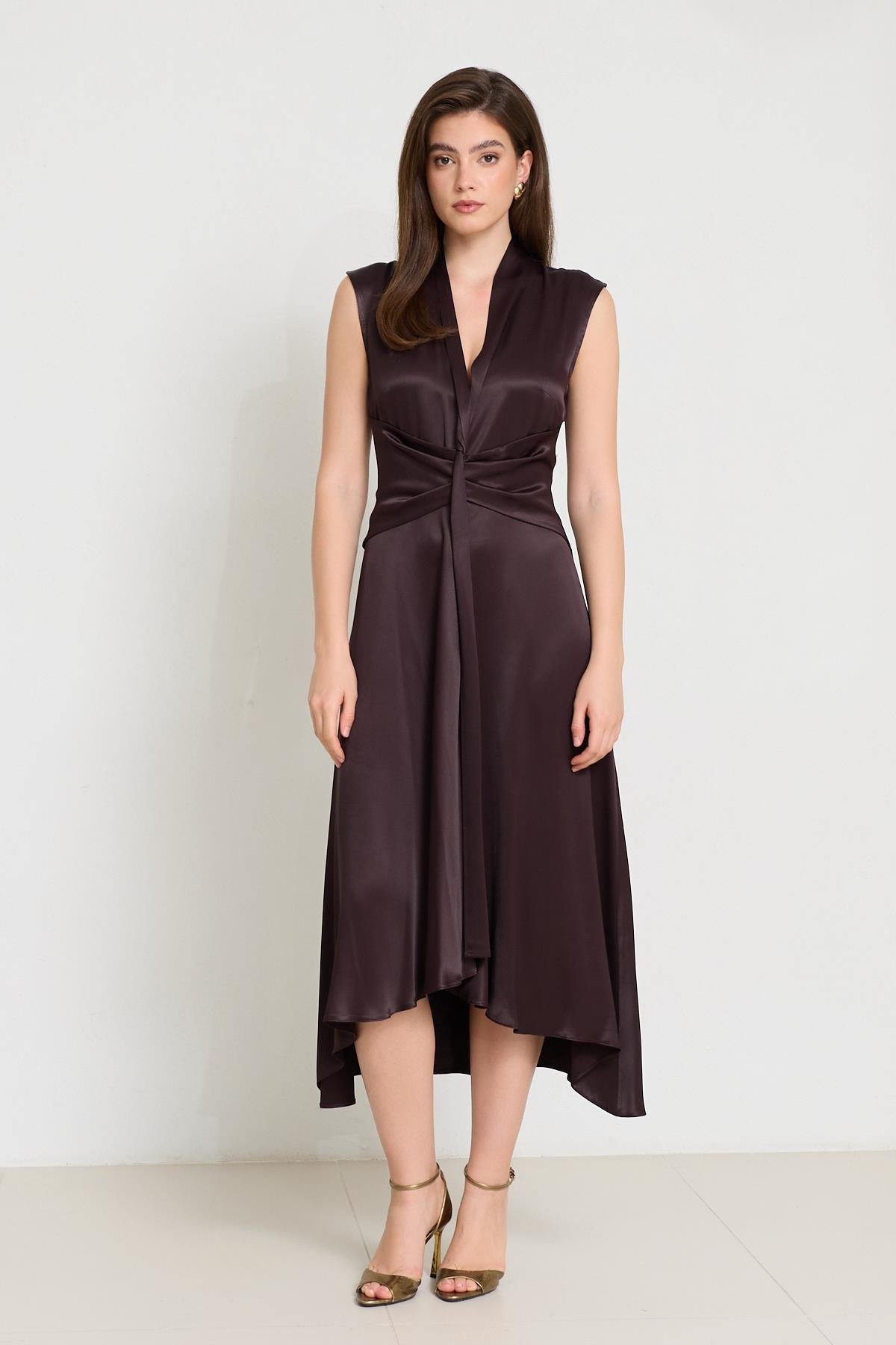 Şıklığı ve zarafeti bir arada sunan V yaka belden detaylı midi boy kolsuz elbise, modern ve sofistike bir görünüm elde etmek isteyenler için ideal bir tercihtir. V yaka detayı, boyun bölgesini zarif bir şekilde vurgulayarak, zarif bir siluet oluşturur. Bel kısmındaki detay ise, vücudu güzel bir şekilde sarar ve ince bir görünüm sağlar. Midi boy kesimi, hem şık bir havası hem de rahatlığıyla dikkat çeker, hem gündüz hem de akşam etkinliklerinde rahatlıkla tercih edilebilir. Kolsuz yapısı, yaz aylarında şıklığına şıklık katarken, katmanlı aksesuarlarla da kombinlenebilir. Hem şık hem rahat bir stil arayanlar için mükemmel bir elbise seçeneğidir.
