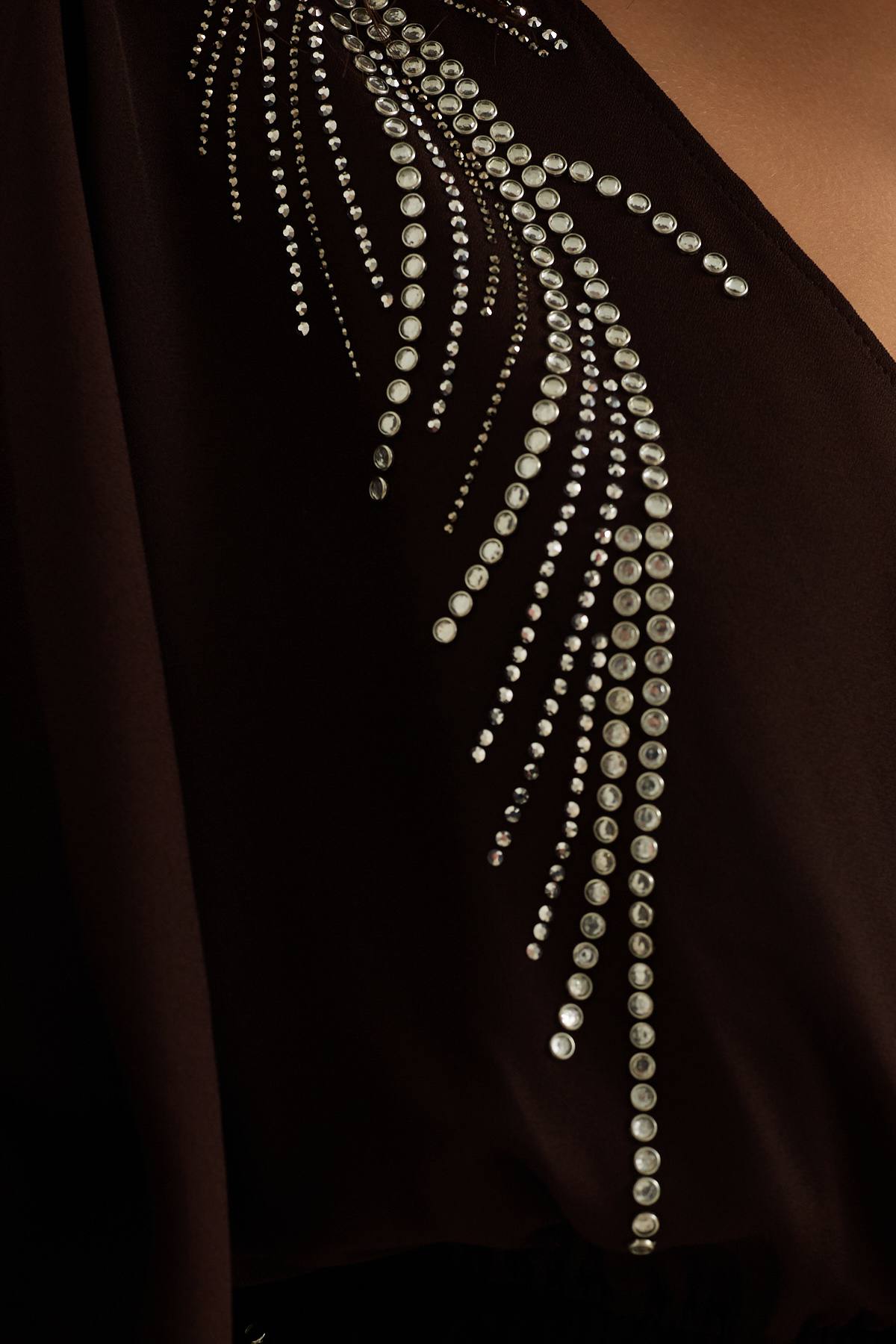 Acı-Kahve Yaka Ve Taş Detaylı Belden Büzgülü Uzun Kollu Rahat Kesim Midi Boy Elbise (ST20250S40358901)