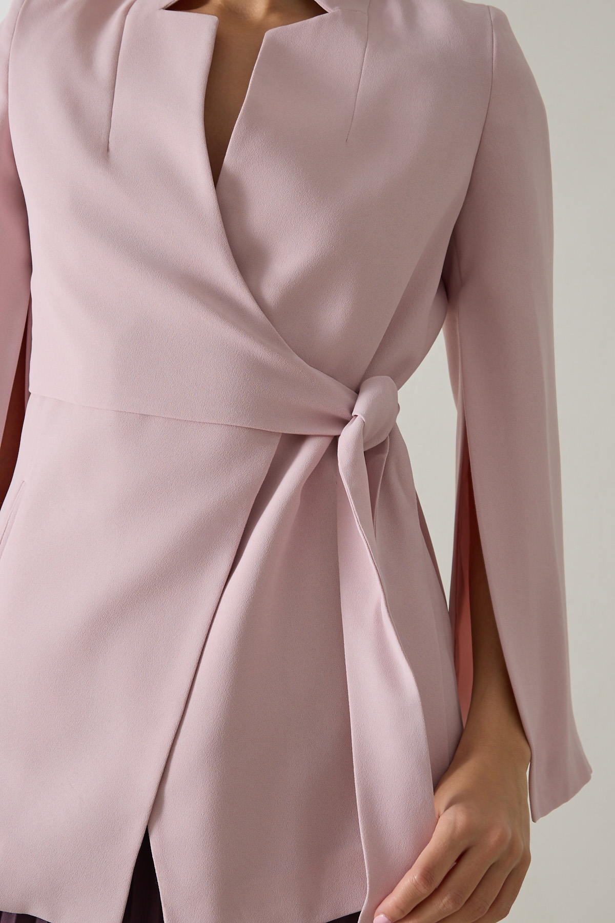 Açık Pudra Dar Kalıp Kol Detaylı Belde Bağlama Detaylı Ceket