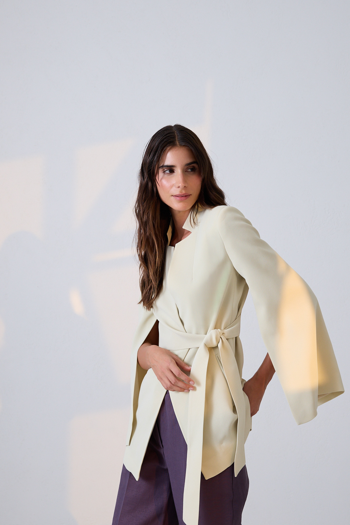 Açık Yeşil Dar Kalıp Kol Detaylı Belde Bağlama Detaylı Ceket