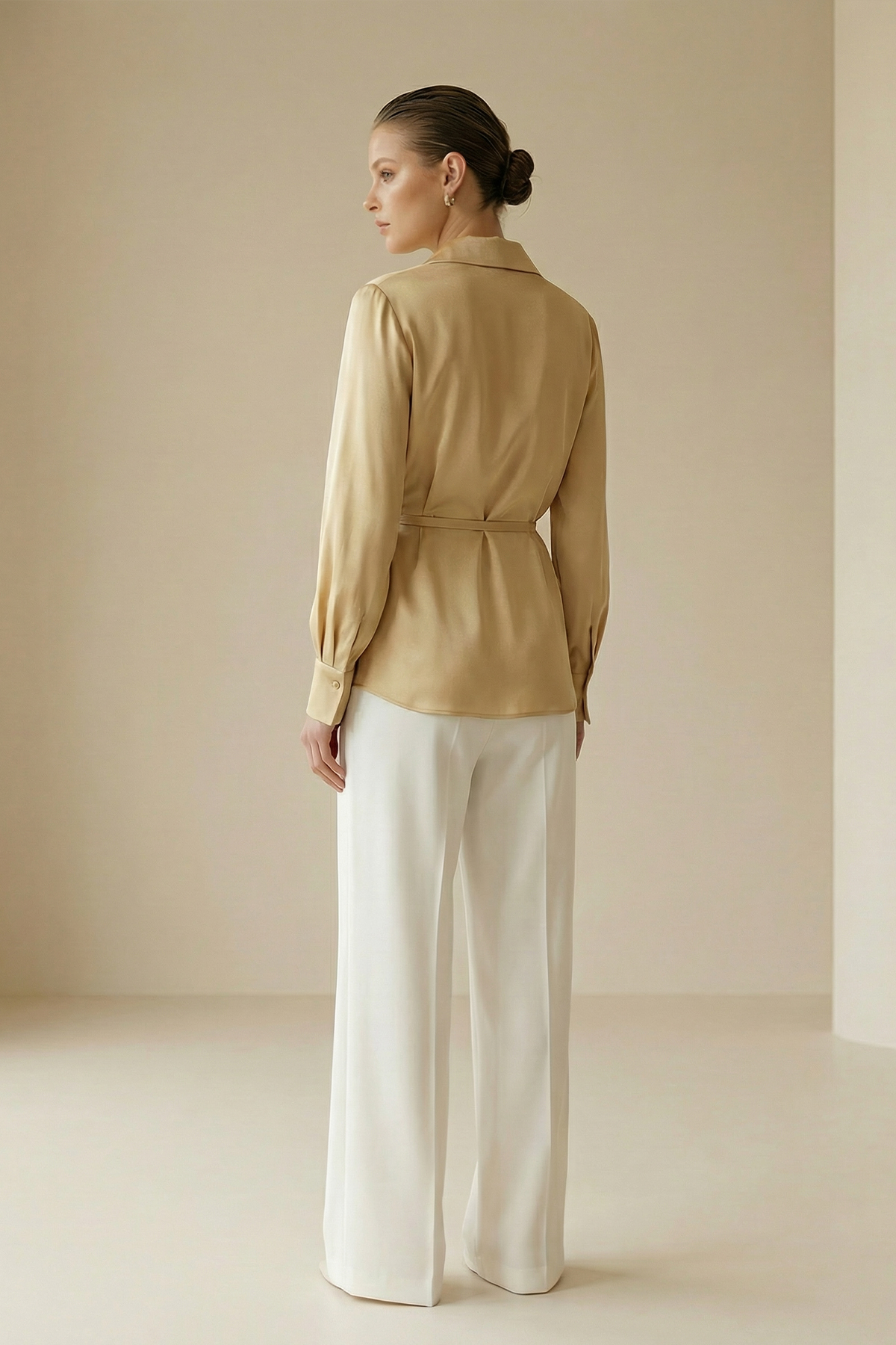 Kruvaze yaka formu ve yaka detaylarıyla öne çıkan bu uzun kollu bluz, feminen zarafeti modern bir duruşla buluşturur. Vücuda dengeli oturan kesimi silueti zarif bir şekilde vurgularken, kruvaze yapı tasarıma sofistike bir karakter kazandırır. Günlük şıklıktan ofis stiline uzanan kullanımıyla, zamansız ve güçlü bir stil tamamlayıcısıdır.