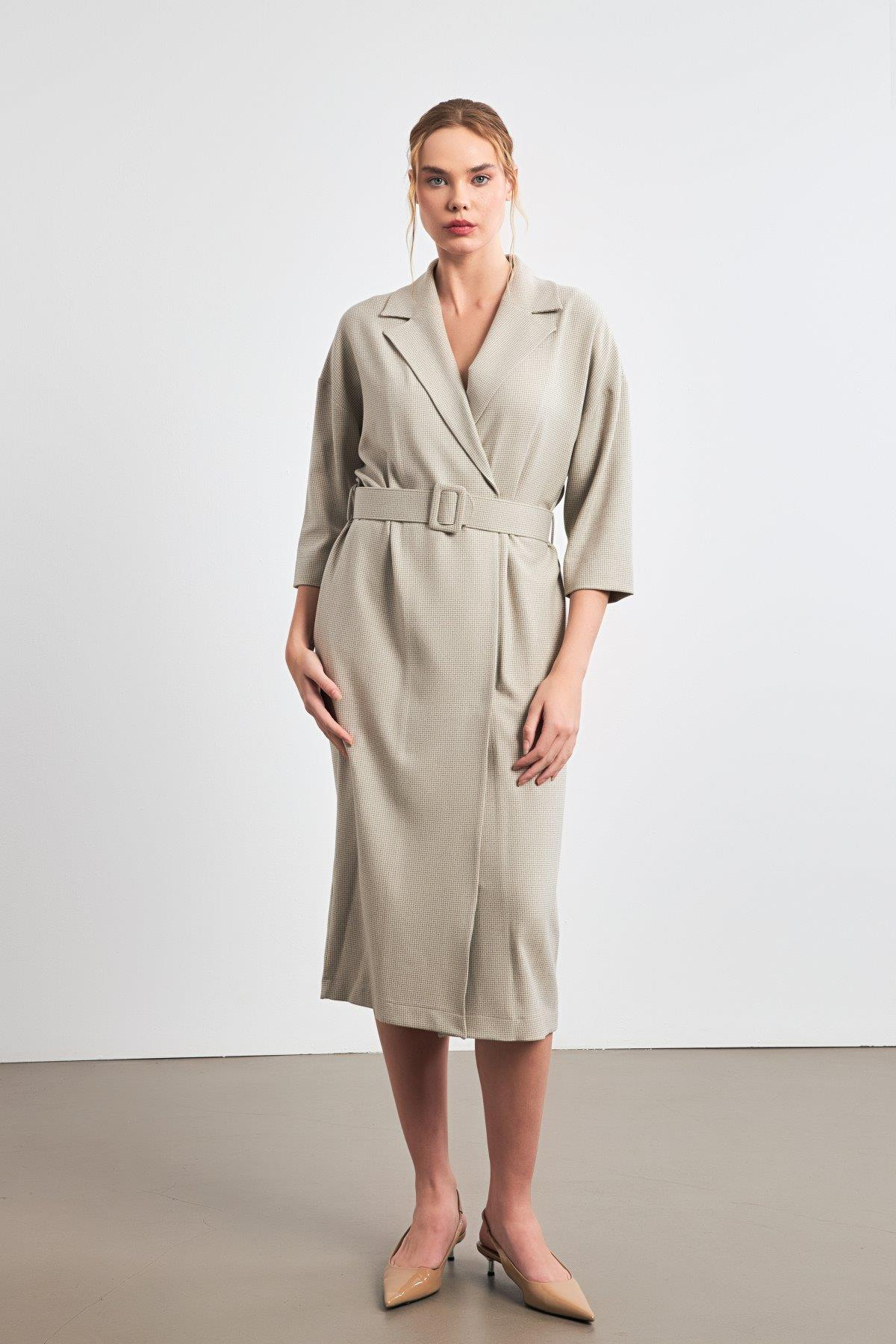 Kemer detaylı ceket yaka elbise, klasik şıklığı modern dokunuşlarla birleştiren zarif bir parçadır. Ceket yaka, elbiseye sofistike bir hava katarken, bel kısmındaki kemer detayı, vücut hatlarını vurgulayıp ince bir siluet oluşturur. Bu elbise, hem iş toplantıları hem de akşam etkinlikleri için mükemmel bir tercihtir. Kumaşının kalitesi ve kesiminin zarifliği, her anınızda kendinizi özel hissetmenizi sağlar. Şıklığın ve konforun mükemmel bir birleşimi olan bu elbise, gardırobunuzda vazgeçilmez bir parça olacaktır.