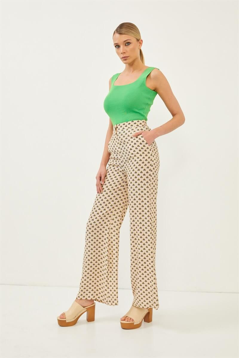 Retro deseni, kumaşının hafifliği ve yumuşaklığı sezonun trendi geniş paça pantolonu aynı desen gömleği ile tamamlayıp iddalı bir görünüm elde edebilirsiniz.