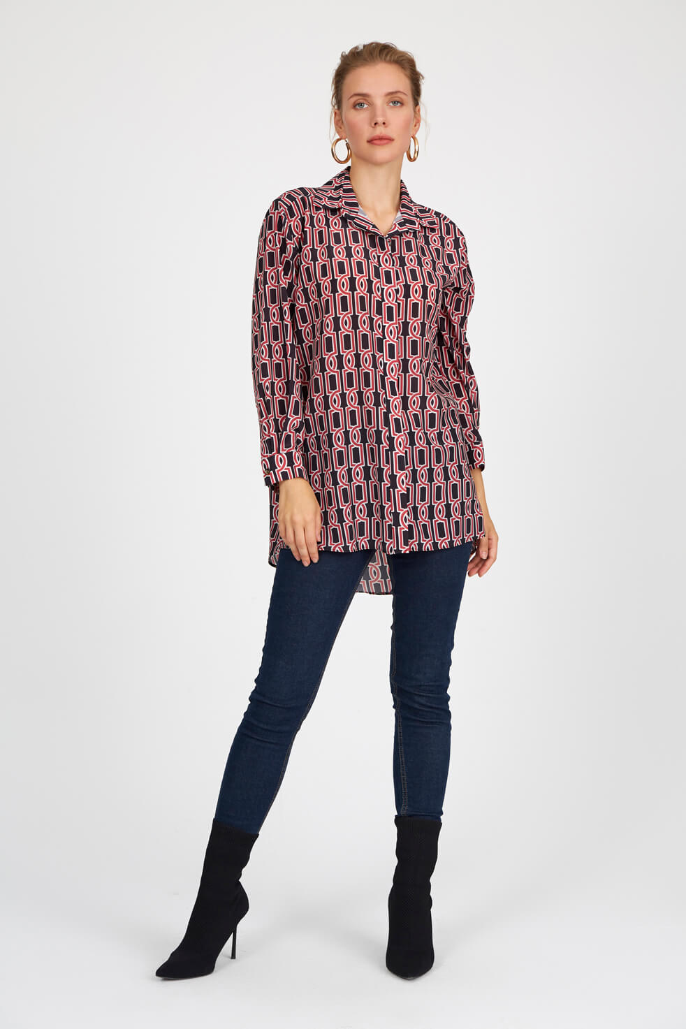 Cennet Pembesi-Siyah Gömlek Yaka Uzun Kol TunikST040W6505102