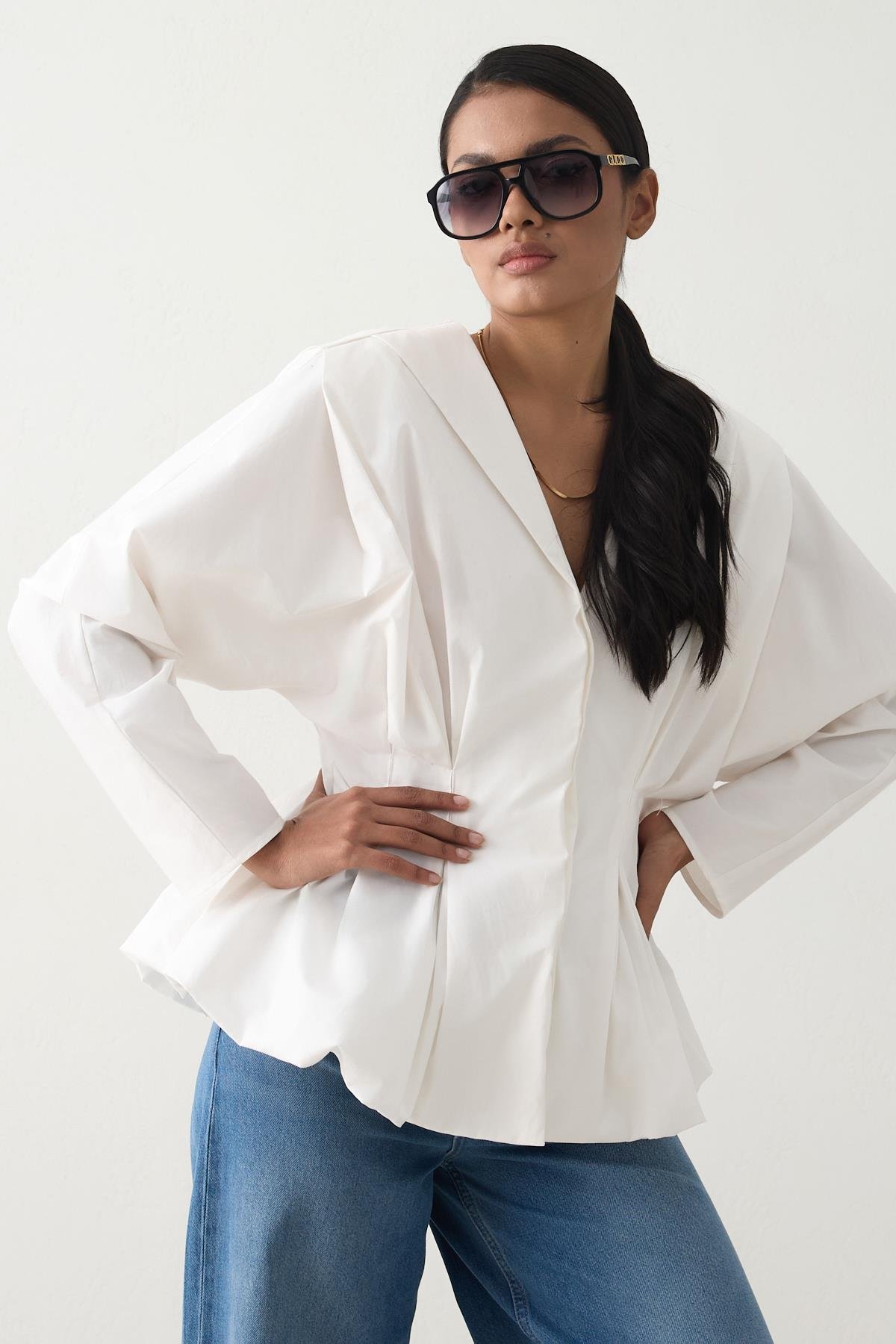 Rahatlık ve zarafetin buluştuğu %100 Pamuklu Belden Büzgü Detaylı Tam Kalıp Bluz, şıklığınızı konforla tamamlıyor. Doğal pamuklu kumaşı sayesinde gün boyu nefes alabilen yapısıyla cildinize dost bir deneyim sunar. Bel kısmındaki büzgü detayı, vücuda kusursuz bir uyum sağlayarak feminen ve modern bir siluet oluşturur. Günlük kombinlerden şık davetlere kadar her anınıza eşlik edecek zamansız bir parça! %100 Pamuklu Belden Büzgü Detaylı Tam Kalıp Bluz: Konforun ve Şıklığın Buluştuğu No PREMIUM KUMAŞ PAMUK: Ham maddesi pamuk olan cotton kumaşlar doğal bir elyaftır, pamuk liflerinden elde edilir. Emici özelliğinden dolayı yazın en kullanışlı kumaş türüdür. Nemi iyi emmesi ve ısıyı dışarı vermesi sebebiyle serin tutma özelliği bulunur, terletme yapmaz.