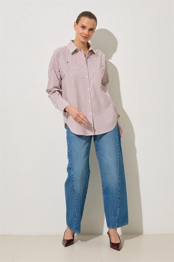 Geleneksel dokunuşlara modern zarafet: %100 pamuk çizgi ve inci detaylı gömlek, klasik gömlek formuna ince ve feminen detaylar ekleyerek fark yaratıyor. Nefes alabilen pamuk kumaşı gün boyu konfor sağlarken, zarif inci süslemeler ve çizgili doku tasarıma sofistike bir hava katıyor. Hem ofis stilinde hem de gündelik kombinlerde şıklık arayanlar için ideal. Kumaş pantolonlarla zarif, jeanlerle daha rahat bir görünüm elde edebilirsiniz. Her gardıropta yer alması gereken özel bir parça! PREMIUM KUMAŞ PAMUK: Ham maddesi pamuk olan cotton kumaşlar doğal bir elyaftır, pamuk liflerinden elde edilir. Emici özelliğinden dolayı yazın en kullanışlı kumaş türüdür. Nemi iyi emmesi ve ısıyı dışarı vermesi sebebiyle serin tutma özelliği bulunur, terletme yapmaz.