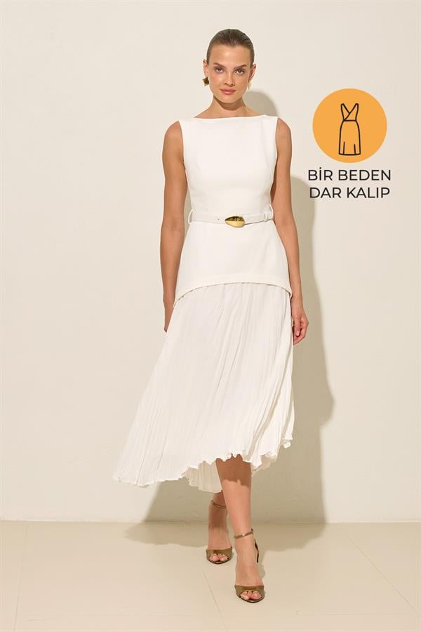 Kolsuz belden kemerli dar kalıp kayık yaka elbise, zarif ve şık bir tasarıma sahip. Bel kısmındaki kemer detayı, vücuda mükemmel bir şekil verirken, dar kesimi modern bir siluet oluşturuyor. Kayık yaka tasarımı ise şıklığınızı tamamlıyor. Bu elbise, hem ofis şıklığına hem de özel davetlerdeki zarafetinize uyum sağlayacak mükemmel bir seçenek. Gardırobunuzda mutlaka yer alması gereken bir parça.