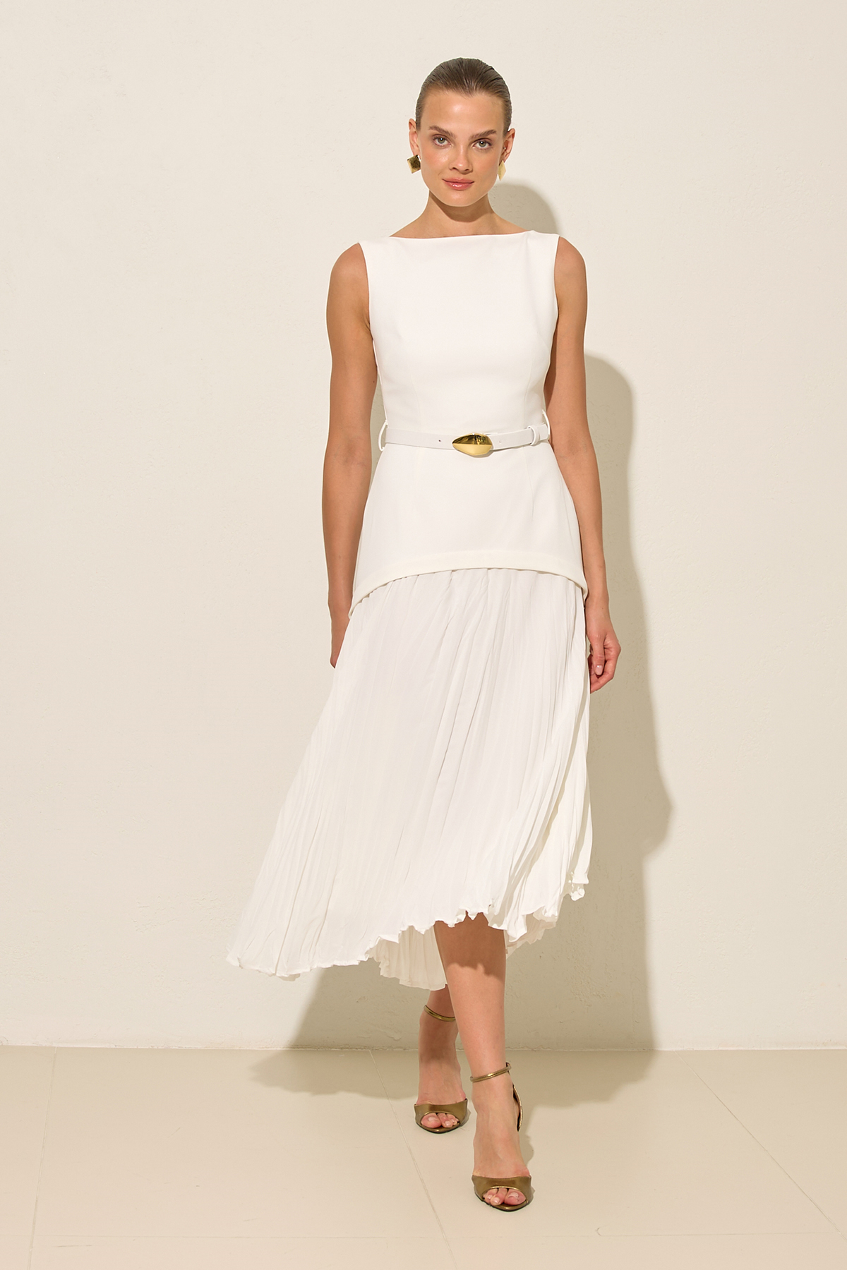 Kolsuz belden kemerli dar kalıp kayık yaka elbise, zarif ve şık bir tasarıma sahip. Bel kısmındaki kemer detayı, vücuda mükemmel bir şekil verirken, dar kesimi modern bir siluet oluşturuyor. Kayık yaka tasarımı ise şıklığınızı tamamlıyor. Bu elbise, hem ofis şıklığına hem de özel davetlerdeki zarafetinize uyum sağlayacak mükemmel bir seçenek. Gardırobunuzda mutlaka yer alması gereken bir parça.