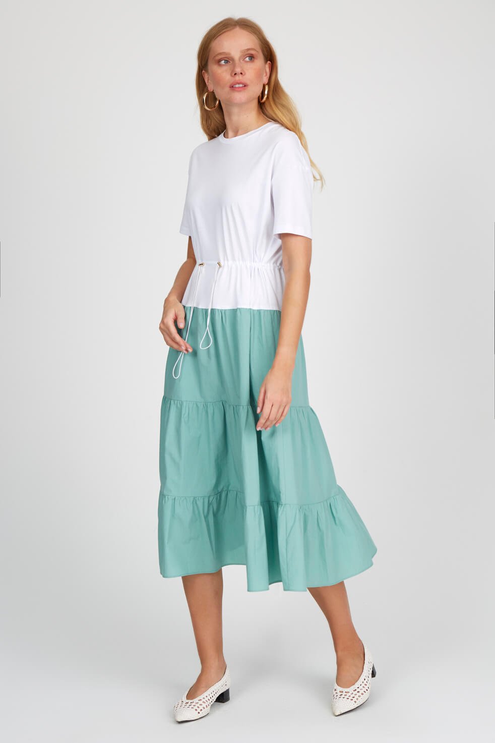 Bisiklet yaka diz altı boy pamuk elbise yaz günlerinin en trend parçası olacak.