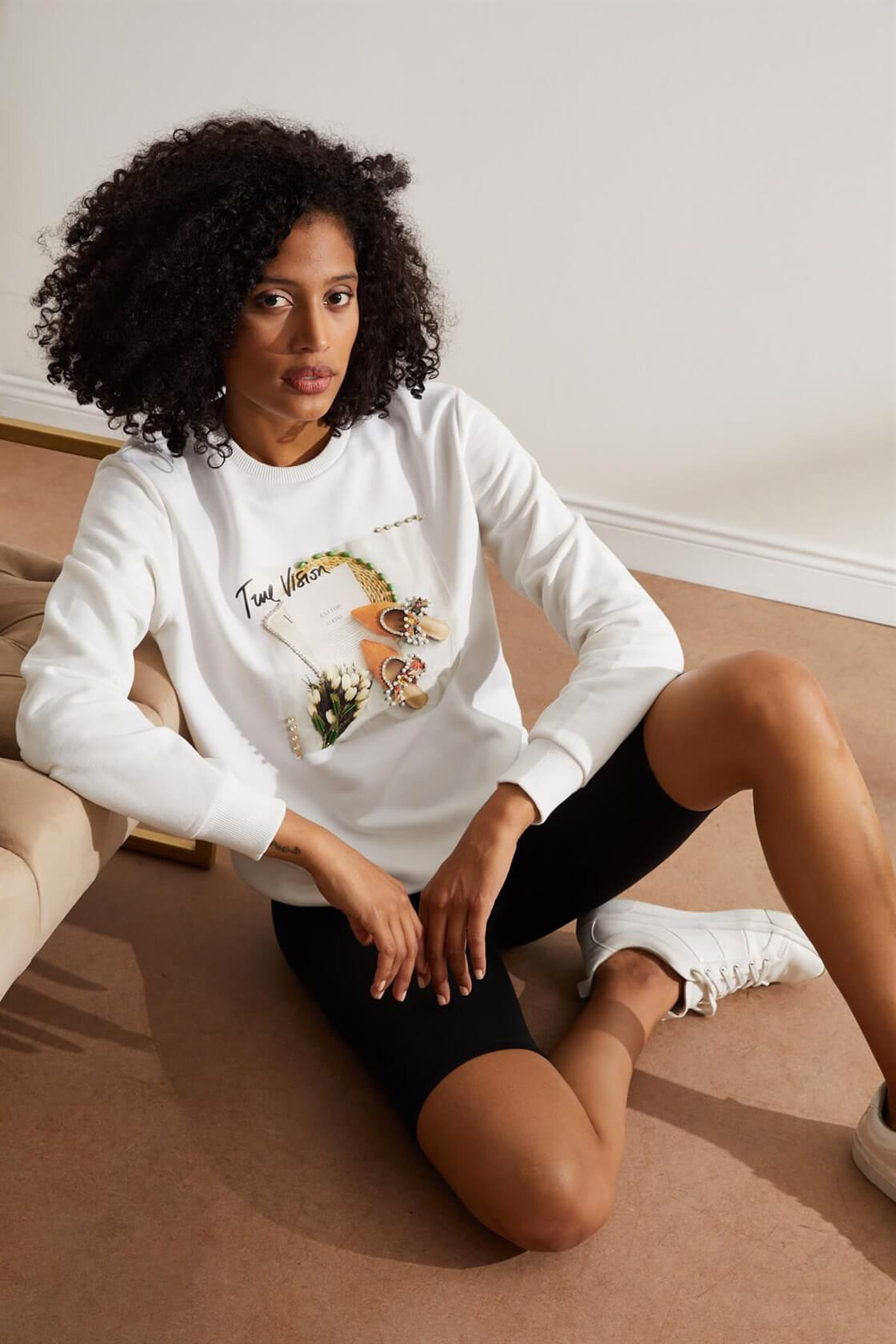 Ekru Time Vision Slogan Baskılı SweatshirtST060W7208101