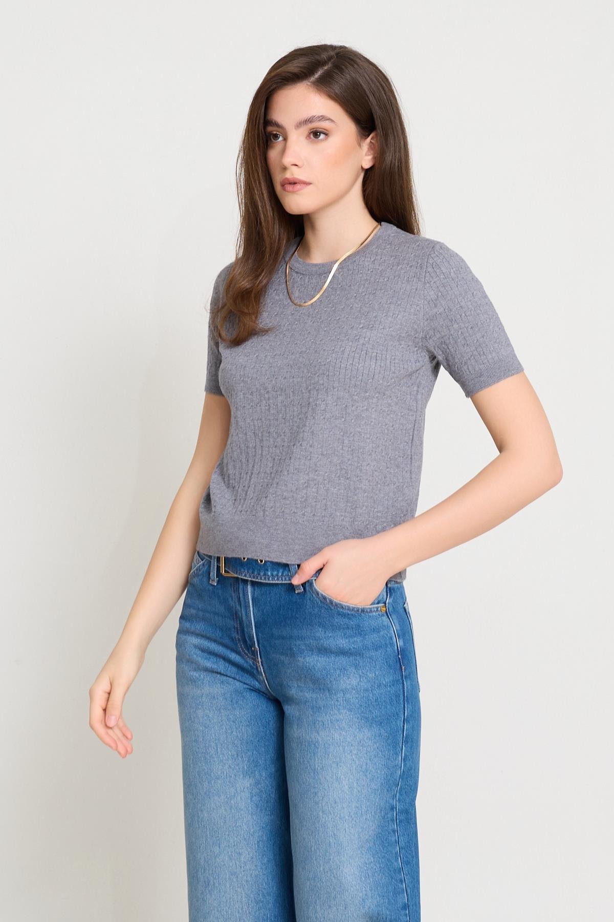 Gri Bisiklet Yaka Kısa Kollu Triko Kadın Kategorisiz modelleri