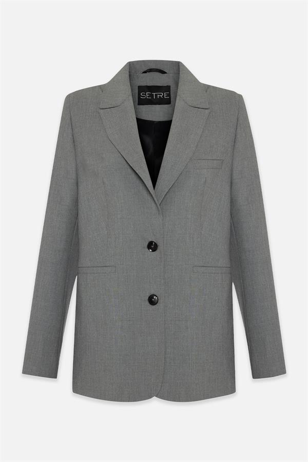 Gri Cep Ve Düğme Detaylı Basic Ceket
