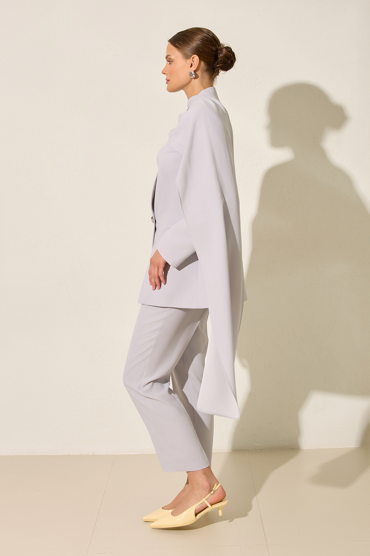 Tam kalıp kesimiyle dengeli ve kusursuz bir siluet sunan bu pantolon, zamansız tasarımıyla gardırobun temel parçalarından biri olmaya adaydır. Yapılandırılmış formu modern bir duruş yaratırken, akıcı yapısı gün boyu konfor sağlar. Günlük şehir stilinden şık ofis kombinlerine kadar çok yönlü ve sade bir şıklık sunar.