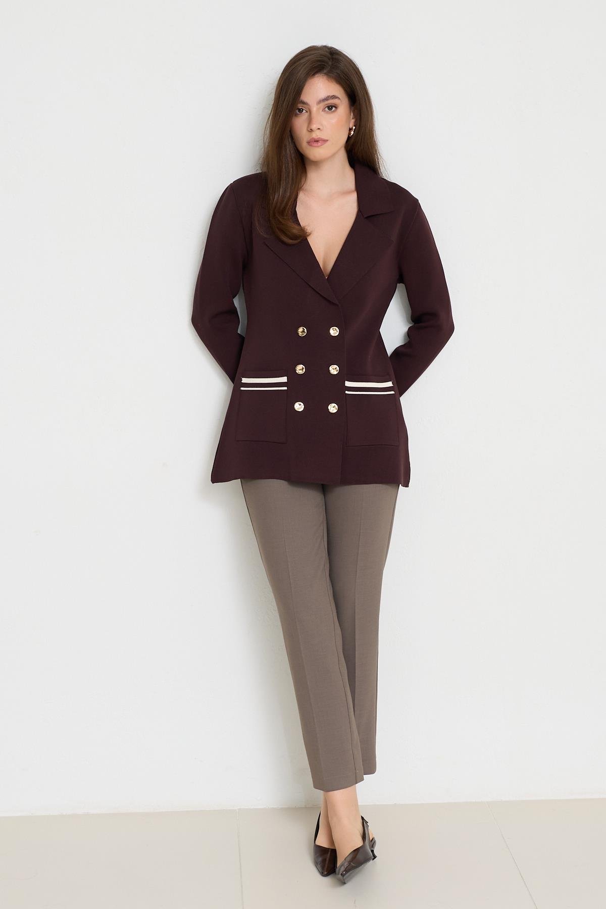 Kahverengi Düğme Ve Çizgi Detaylı Triko Ceket (ST20250W94476002)