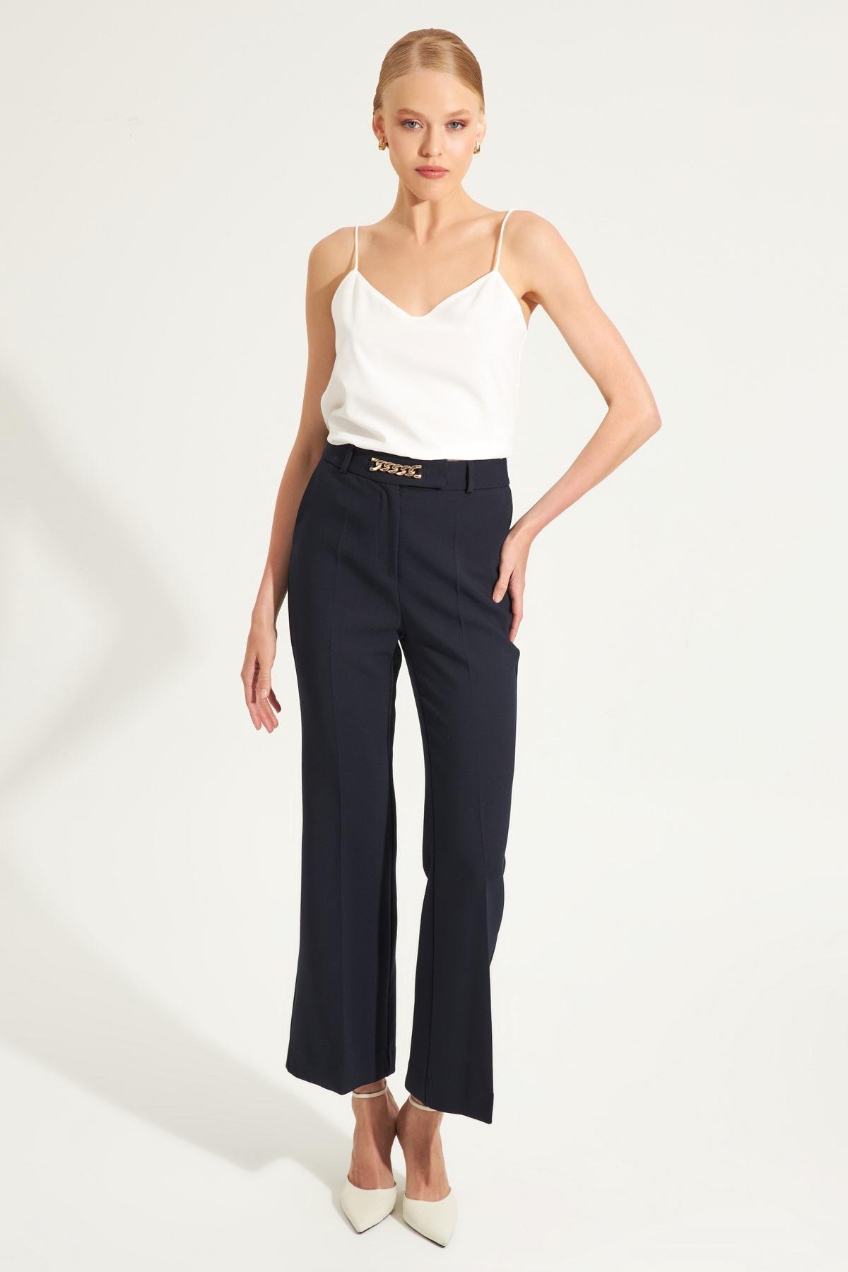 Kusursuz bir görünüm yaratmaya yardımcı olan bedene oturan ispanyol paça pantolonlar zarif detaylarla süslenerek Setre kadınına hitap ediyor.