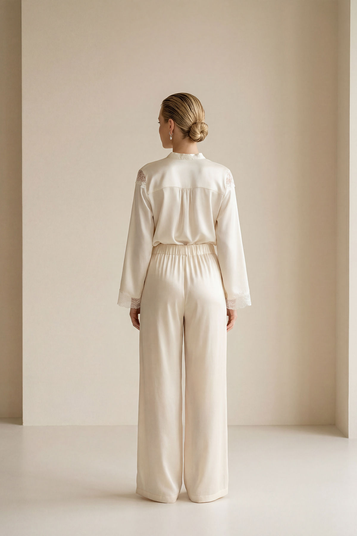 Belden oturtmalı yapısıyla silueti zarifçe vurgulayan bu pantolon, geniş kesimiyle güçlü ve modern bir duruş sunar. Akıcı formu hareket özgürlüğü sağlarken, dengeli kalıbı şehirli ve sofistike bir stil yaratır. Günlük kombinlerden şık ofis görünümlerine kadar zamansız ve çok yönlü bir kullanım sunar.