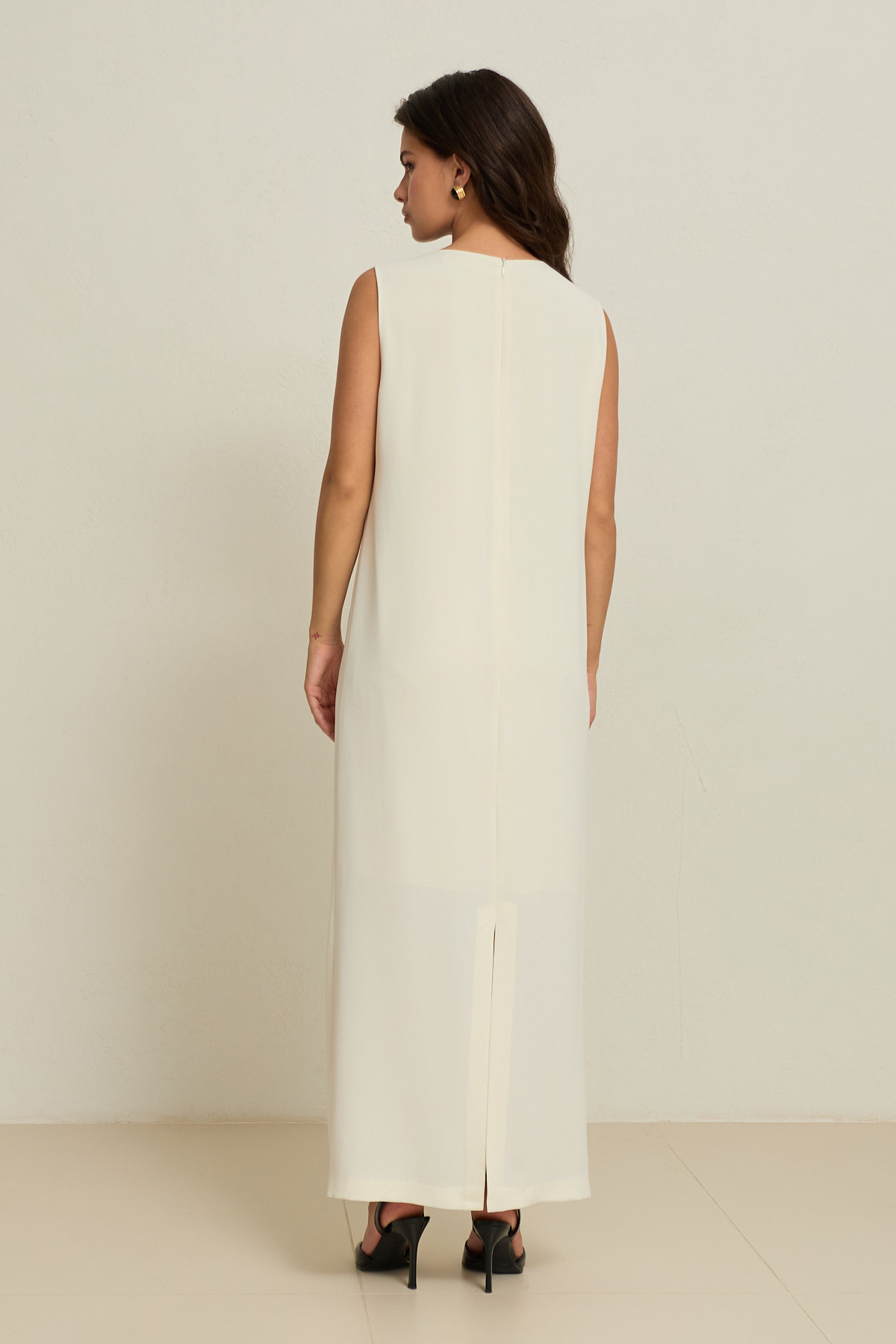 Tek omuzda yer alan dantel detayıyla feminen ve sofistike bir duruş sunan bu elbise, kolsuz tasarımı ve rahat kesimiyle gün boyu konfor sağlar. Tam kalıp yapısı silüeti dengeli bir şekilde vurgularken, akıcı formu hem günlük şıklıkta hem de özel anlarda zarif bir etki yaratır. Zamansız tasarımıyla gardırobun karakterli parçalarından biridir.