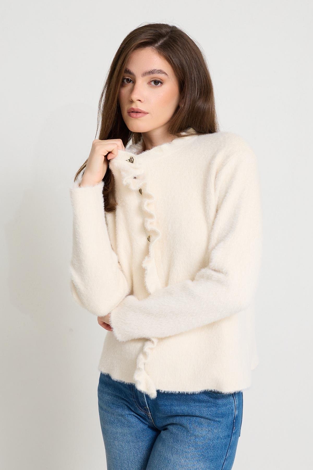 Krem Uzun Kollu Fırdır Detaylı Triko Hırka (ST20250W94488001)