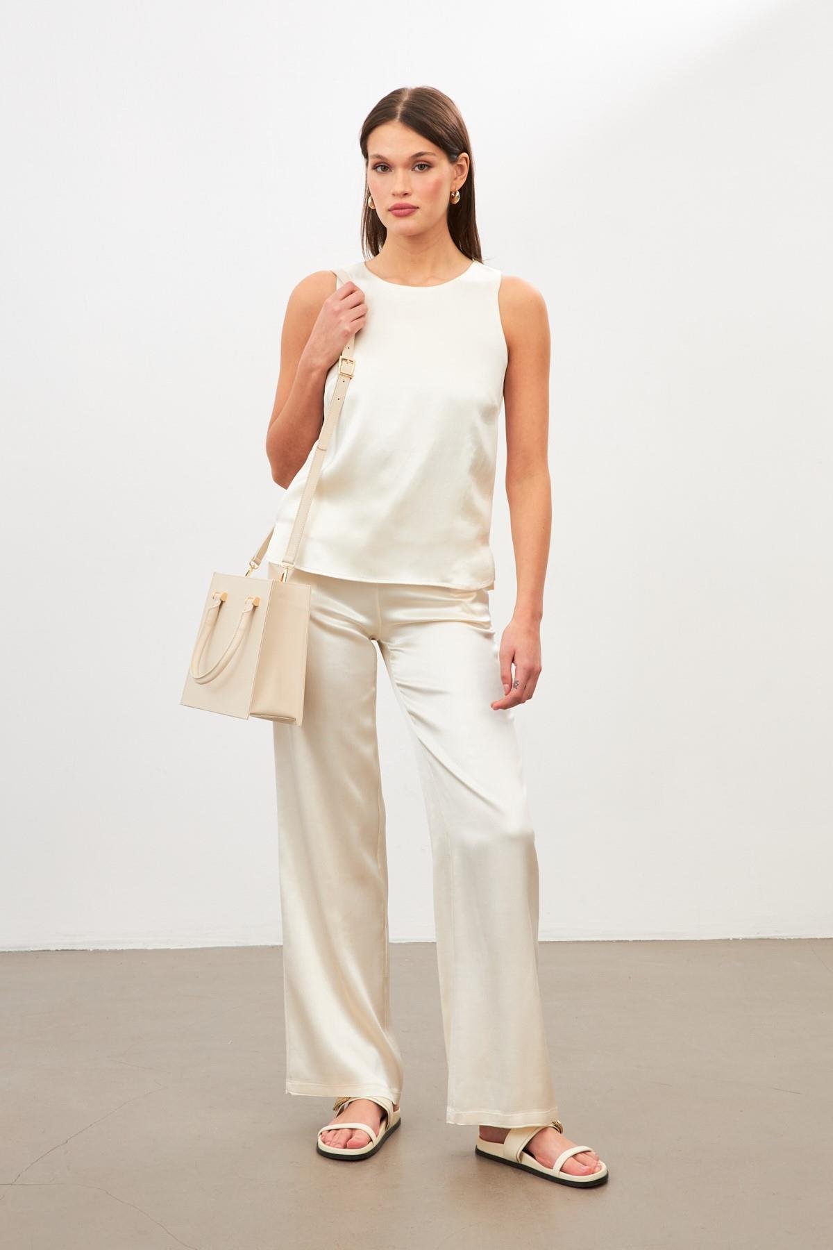 Yuvarlak yaka ve kolsuz tasarımıyla hafif ve şık bir görünüm sunan bu bluz, her mevsimde ve her durumda rahatlıkla tercih edilebilir. Basit ve zarif tasarımıyla her tarzla uyum sağlayacak bir parça.