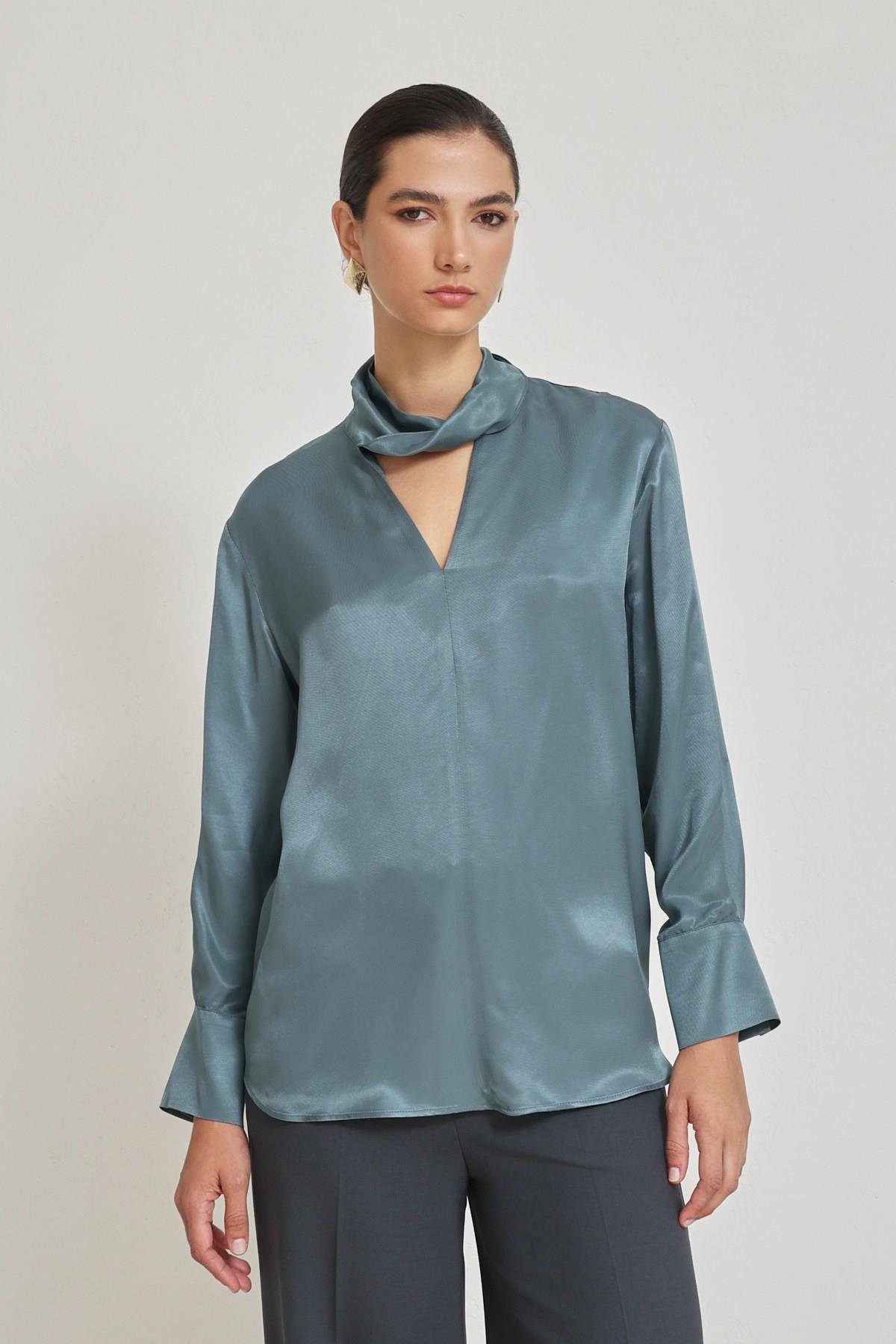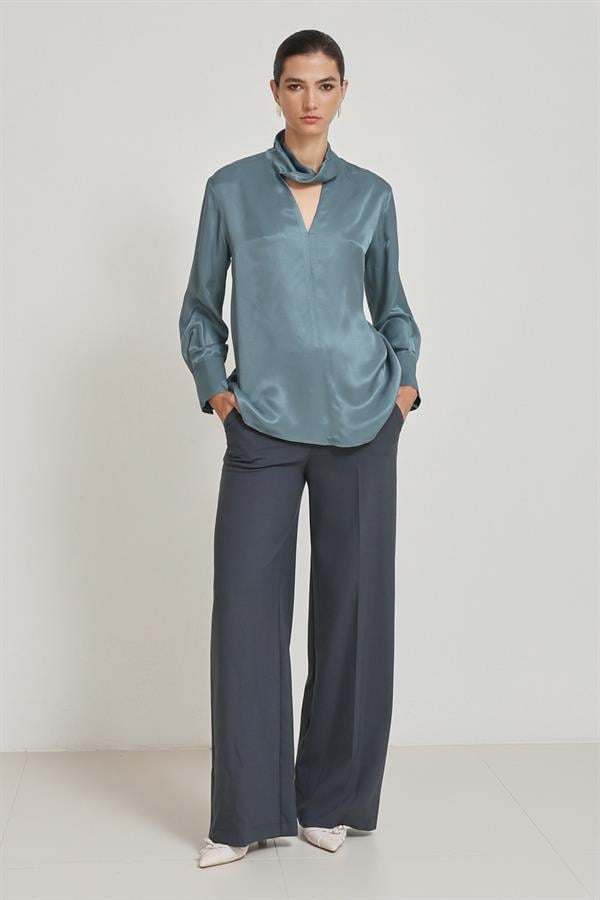 Modern ve zamansız bir şıklık sunan bu rahat kesim bluz, V yaka ve boyun detaylarıyla sade ama etkileyici bir görünüm yaratır. Hafif dökümlü yapısı sayesinde gün boyu konfor sunarken, stil sahibi duruşuyla hem ofis kombinlerine hem de günlük şıklığa uyum sağlar. Jean, kumaş pantolon ya da eteklerle kolayca tamamlanabilir.PREMIUM KUMAŞ RAYON: Rayon, selülozdan üretilen, yumuşak, hafif ve parlak görünümlü bir kumaştır.