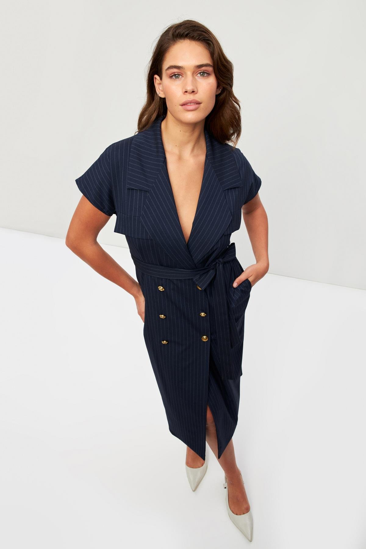 Bu sezonun modası olan ceket yaka detaylı elbise, şıklığı ve rahatlığı bir arada sunuyor. Yaka detayı, elbiseye sofistike bir hava katarak her türlü etkinlik için uygunluğunu arttırıyor. Bel kısmındaki cepler ve kemer detayı ise kullanışlılığı ve modern çizgileri ön plana çıkarıyor. Gündüz şıklığını ve akşam zarafetini bir araya getiren bu elbise, gardırobunuzun vazgeçilmez parçalarından biri olmaya aday.