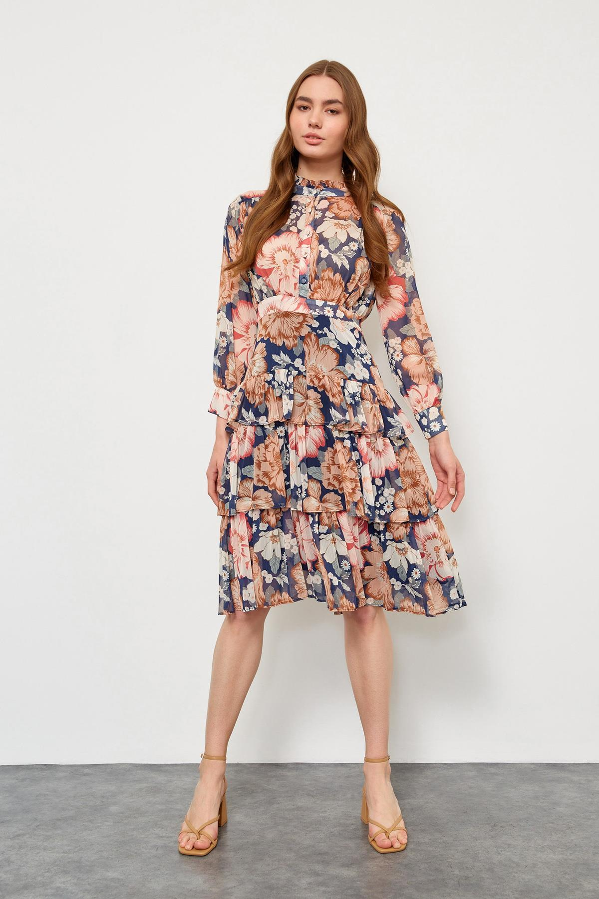 Çiçek dolu bir yaz masalına hoşgeldiniz. Kendinizi ılık bir sahil kenarında hissetmenizi sağlayacak, kumaşı ve formu ile oldukça göz dolduran bu elbiseyi dolabınıza eklemeyi unutmayın…