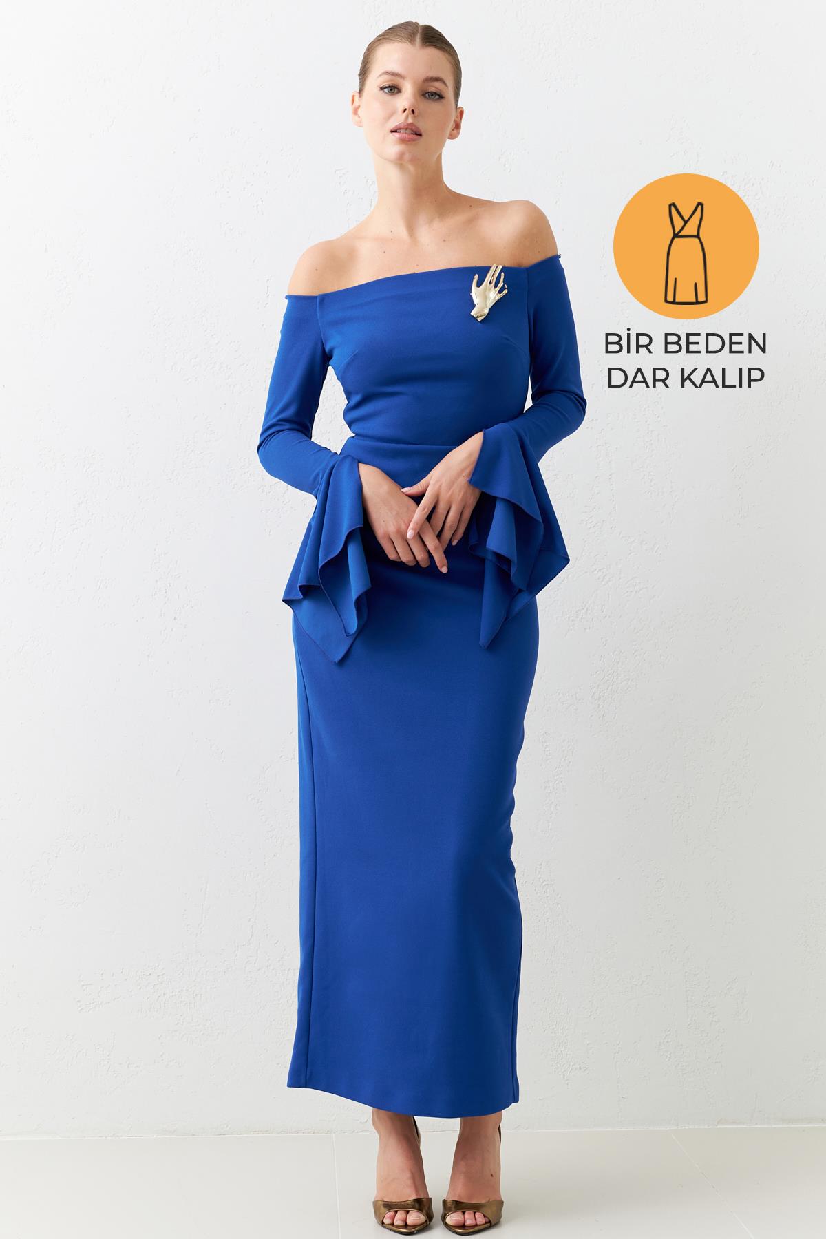 Bu dar kalıp, omuz ve kol detaylı maxi boy elbise, zarafeti ve modernliği bir araya getiriyor. Elbisenin vücuda oturan kesimi, siluetinizi mükemmel şekilde vurgularken, omuz ve kol detayları ona şık ve dikkat çekici bir görünüm kazandırıyor. Maxi boyu, hem klasik hem de modern bir hava katıyor, bu da elbiseyi hem günlük hem de özel günler için ideal hale getiriyor. Zarif duruşuyla gardırobunuzda mutlaka yer alması gereken bu elbise, stilinizi bir üst seviyeye taşıyacak.