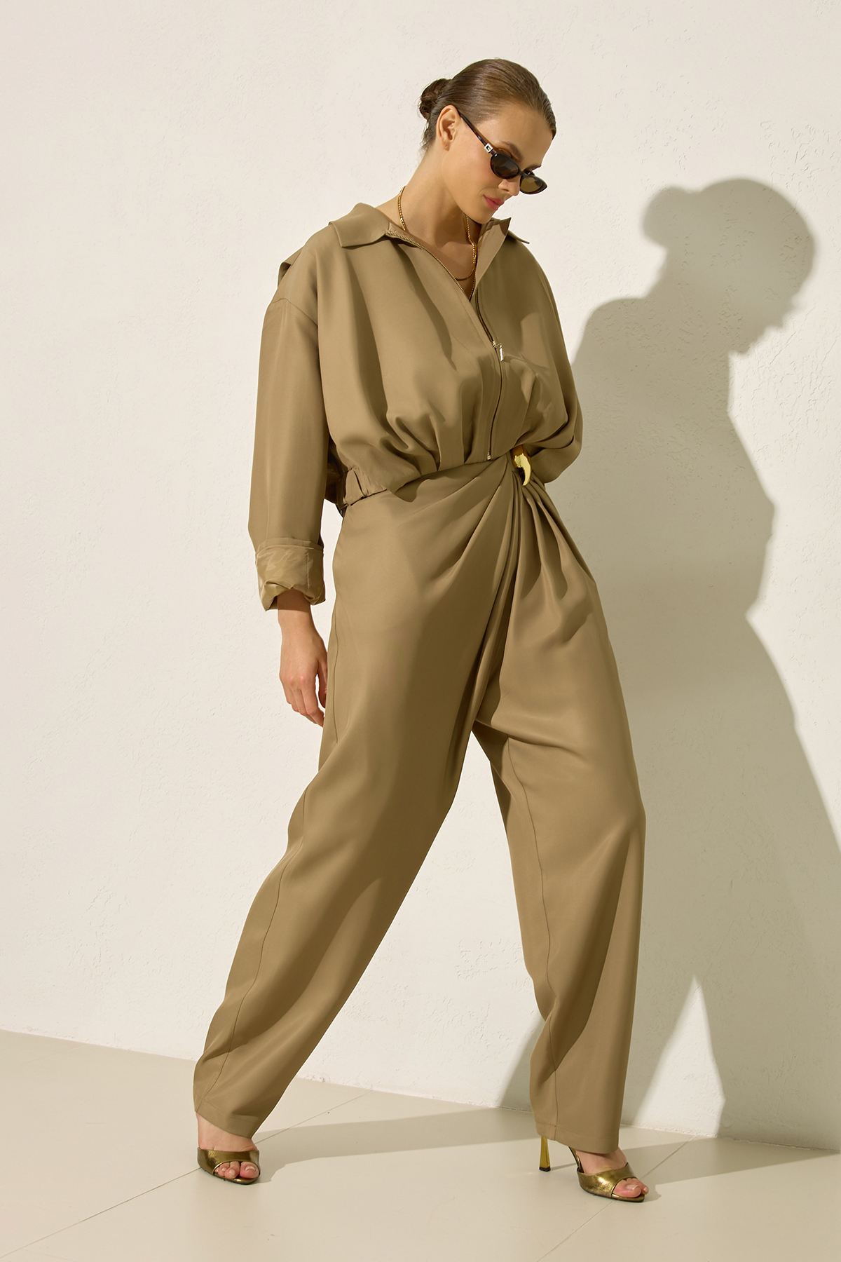 Ceket ve pantolonun kusursuz uyumuyla tasarlanan bu takım, modern şehir stiline net ve güçlü bir duruş kazandırır. Yapılandırılmış formu profesyonel bir görünüm sunarken, yalın tasarımı zamansız bir şıklık yaratır. Ofis şıklığından davet stiline uzanan kullanımıyla, gardırobun vazgeçilmez ve çok yönlü parçalarından biridir.