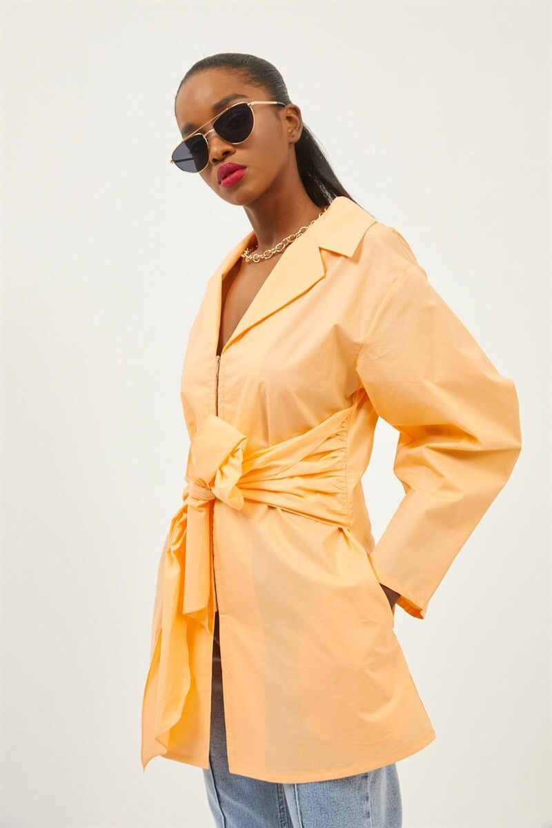 Agraf kapaması ve bağlama detayıyla hareketlenen tunik, hem kalıbı hem de %100 cotton kumaşı ile sezonun trendleri arasında.
