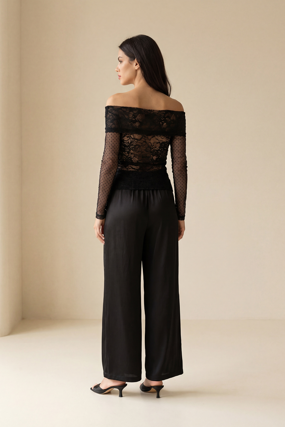 Zarif transparan dokusu ve asimetrik yaka tasarımıyla öne çıkan bu bluz, modern ve feminen bir siluet sunar. Akışkan yapısı sayesinde hafif bir duruş kazanan model, uzun kol detayıyla dengeli ve sofistike bir görünüm yaratır. Gündüzden geceye kolayca uyarlanabilen rahat kesimi, hem şık davetlerde hem de stil sahibi günlük kombinlerde zarif bir tamamlayıcı olarak öne çıkar.