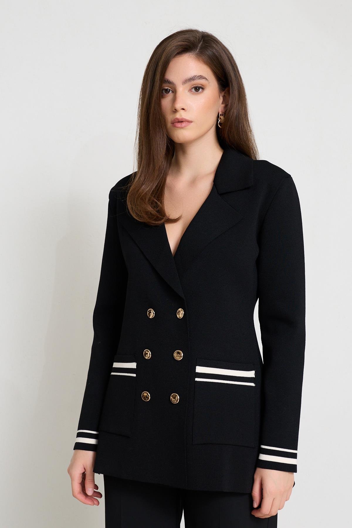 Siyah Düğme Ve Çizgi Detaylı Triko Ceket (ST20250W94476002)