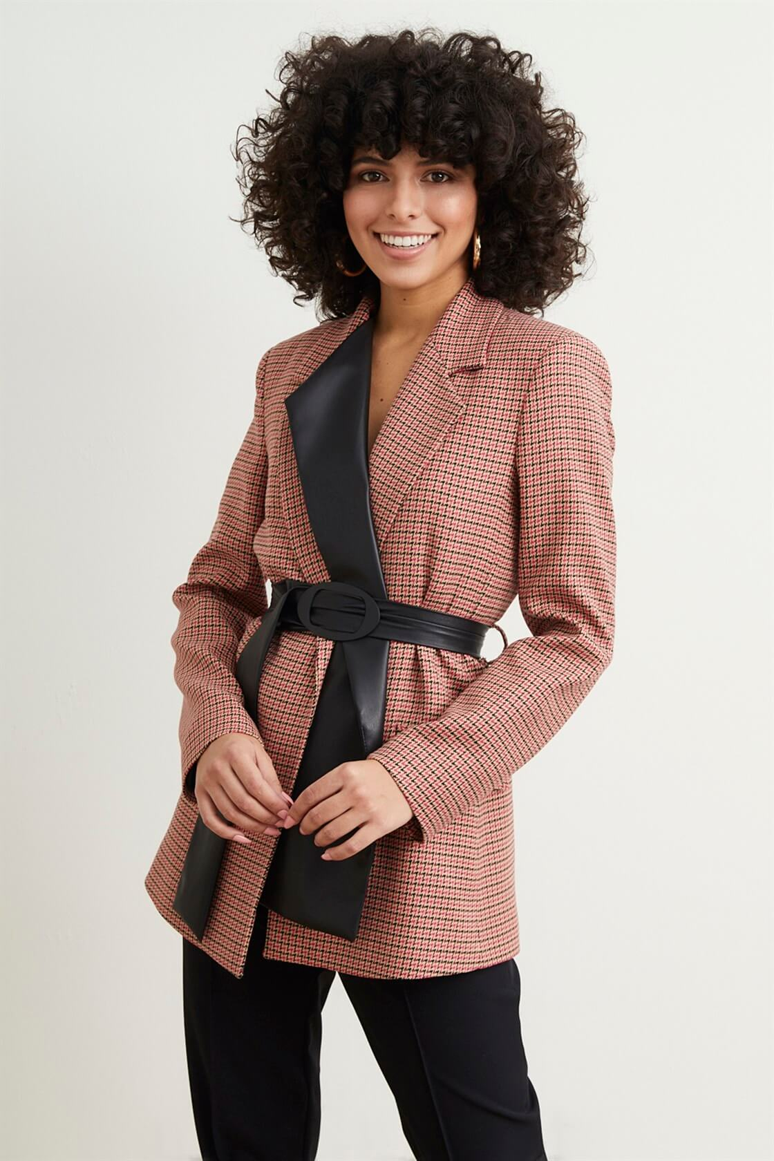 Konforlu ve maskülen ruhlu bu ceket deri efektleriyle günün şıklık yarışını size kazandıracak.