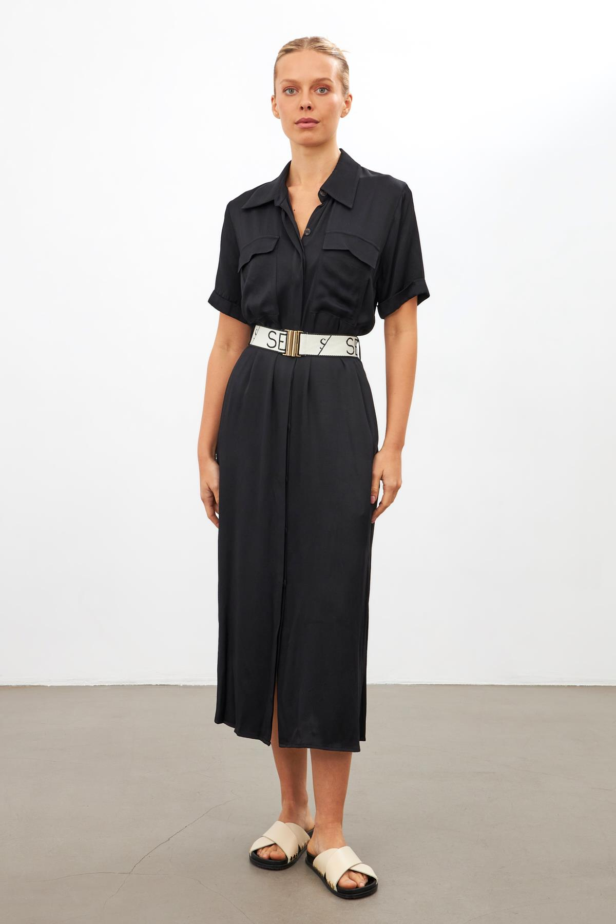 Gömlek Yaka Cep Detaylı Kemerli Midi Boy Elbise, rahat ve şık bir tarzı bir araya getirerek modern kadının favori parçalarından biri olmaya aday. Bu özel tasarım elbise, gömlek yaka kesimi, cep detayları ve beldeki kemeriyle dikkat çekiyor. Gömlek yaka kesimi, klasik bir hava katarak şıklığı vurguluyor. Cep detayları ise hem kullanışlı hem de şık bir görünüm sunuyor. Beldeki kemer ise silueti belirginleştirerek zarif bir görünüm sağlıyor. Gömlek Yaka Cep Detaylı Kemerli Midi Boy Elbise, günlük kullanımdan özel davetlere kadar geniş bir yelpazede kullanılabilir. Şıklığı ve rahatlığı bir araya getiren bu elbise, her kadının gardırobunda özel bir yer edinmeye aday.
