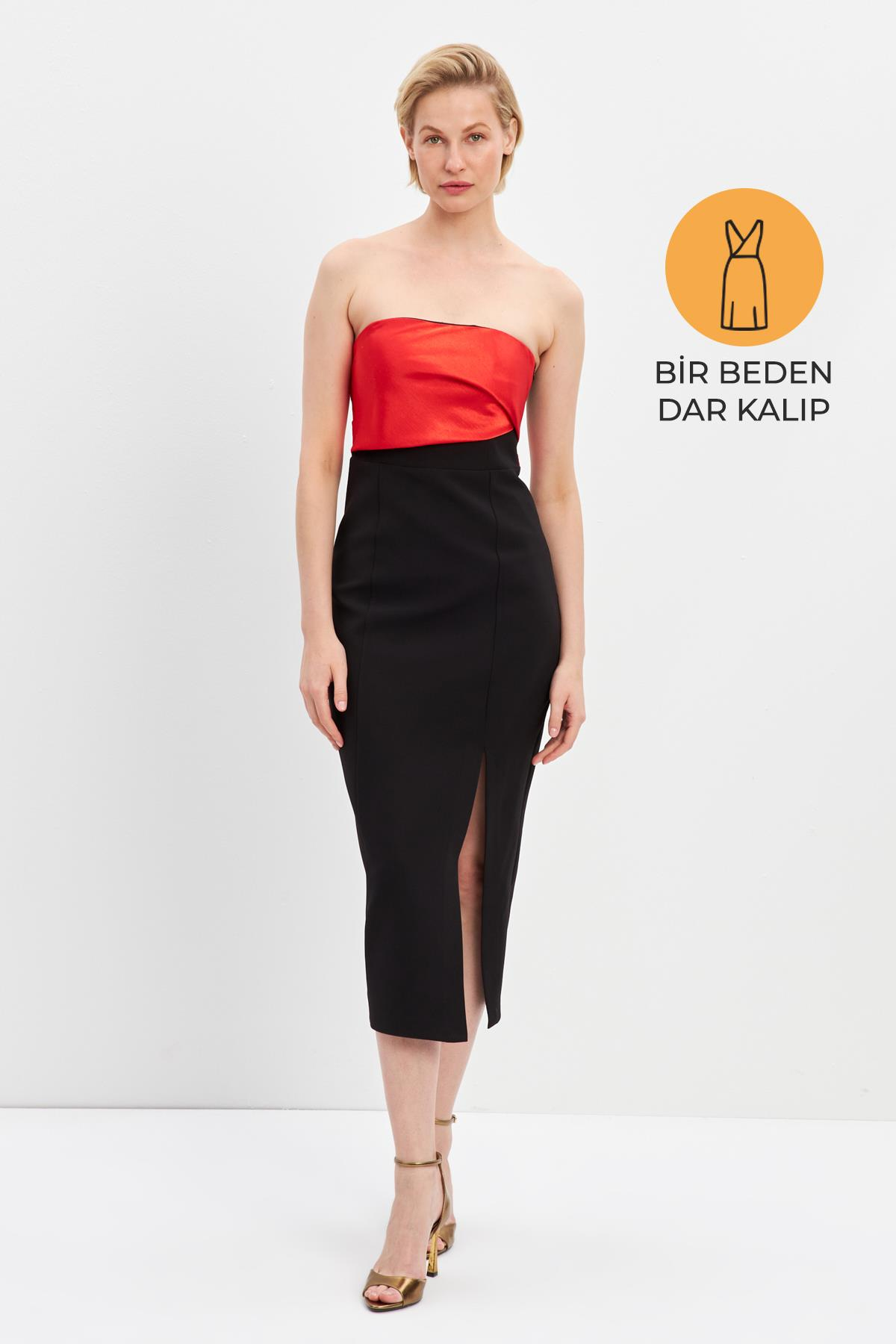 Straplez yırtmaç detaylı midi boy elbise, şıklığı ve zarafeti bir arada sunuyor. Bu elbise, straplez tasarımıyla modern ve çarpıcı bir görünüm sağlarken, yırtmaç detayıyla da feminen bir dokunuş ekliyor. Midi boyuyla hem zarif hem de rahat bir stil sunan bu elbise, özel davetlerden günlük kullanıma kadar geniş bir kullanım alanına sahiptir. Yüksek kaliteli kumaşıyla konforlu bir giyim deneyimi sunan bu elbise, gardırobunuzun vazgeçilmez parçalarından biri olmaya adaydır.