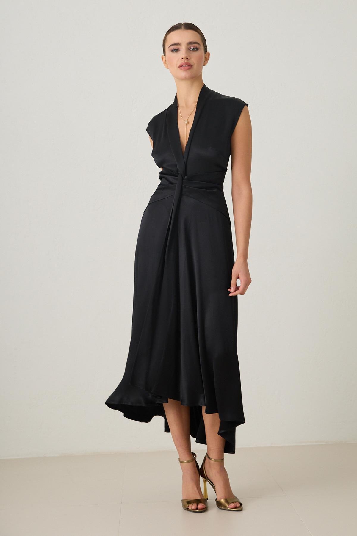 Şıklığı ve zarafeti bir arada sunan V yaka belden detaylı midi boy kolsuz elbise, modern ve sofistike bir görünüm elde etmek isteyenler için ideal bir tercihtir. V yaka detayı, boyun bölgesini zarif bir şekilde vurgulayarak, zarif bir siluet oluşturur. Bel kısmındaki detay ise, vücudu güzel bir şekilde sarar ve ince bir görünüm sağlar. Midi boy kesimi, hem şık bir havası hem de rahatlığıyla dikkat çeker, hem gündüz hem de akşam etkinliklerinde rahatlıkla tercih edilebilir. Kolsuz yapısı, yaz aylarında şıklığına şıklık katarken, katmanlı aksesuarlarla da kombinlenebilir. Hem şık hem rahat bir stil arayanlar için mükemmel bir elbise seçeneğidir.