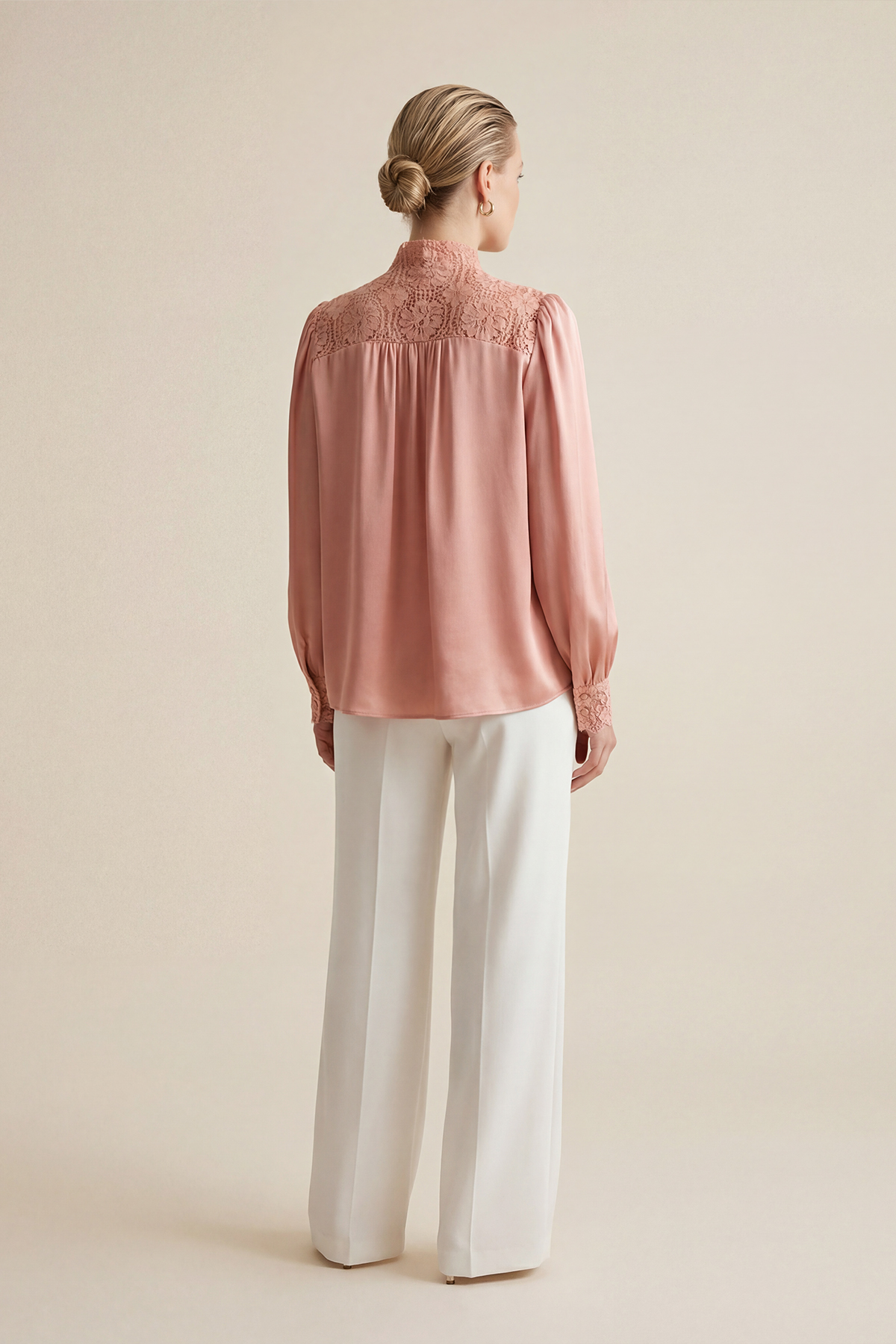 Yakada bağlama detayı ve zarif dantel dokunuşlarıyla öne çıkan bu uzun kollu bluz, romantik şıklığı modern bir yorumla sunar. Yumuşak formu gün boyu konfor sağlarken, dantel detaylar tasarıma feminen ve sofistike bir karakter kazandırır. Günlük kombinlerden özel anlara uzanan kullanımıyla, zarif ve zamansız bir stil tamamlayıcısıdır.