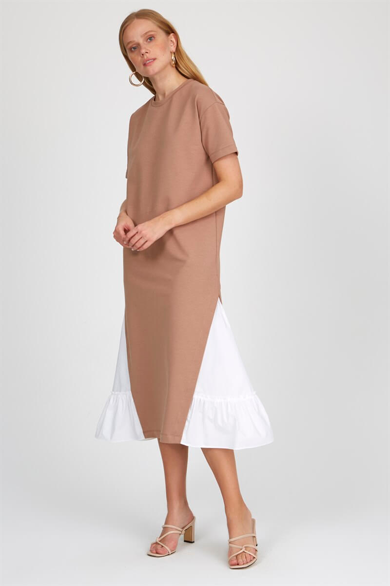 Renklerin iddiasından uzak, daha minimal stillerde giyinmeyi sevenlerin gözdesi bu elbiseyi ister topuklu sandaletlerinizle geceye uyarlayın, isterseniz sneakerlarınızla gündüze