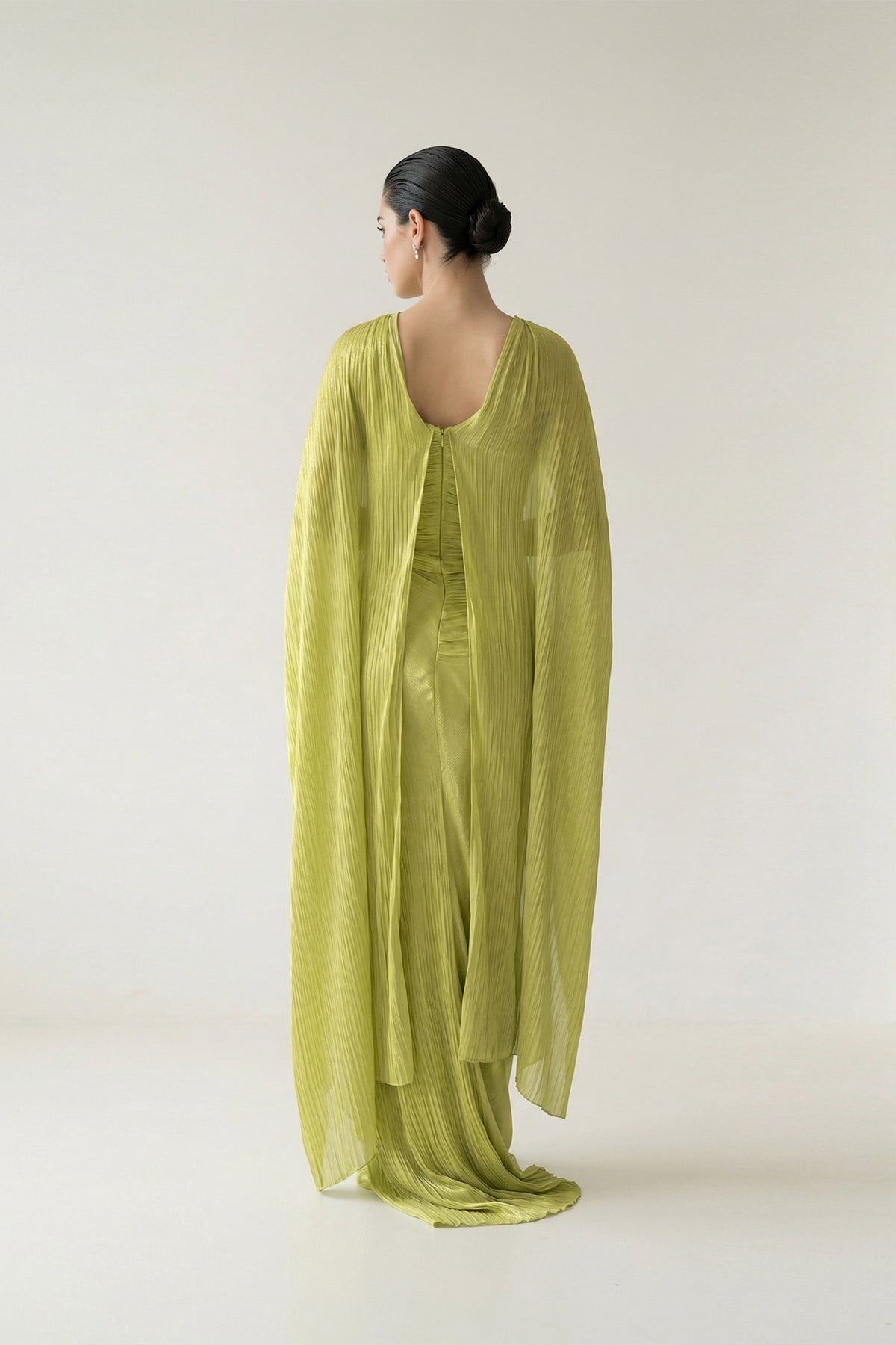 Yağ Yeşili Pelerin Ve Drape Detaylı Geniş Kalıp Abiye Elbise (ST20250S4188701)